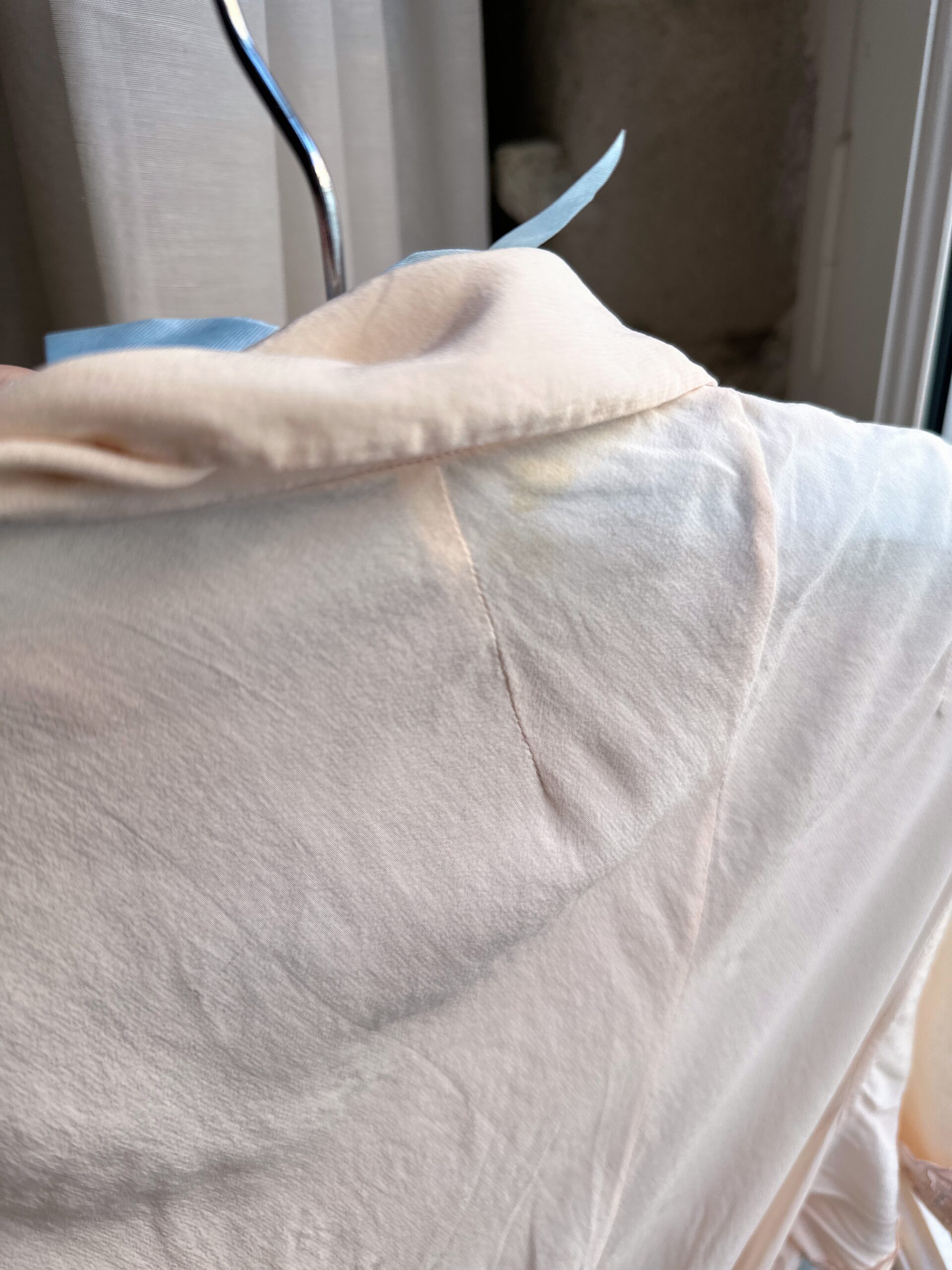 8/10 – Great vintage condition, small faint discolouration on the back of neck near the collar and some wear on the sleeves, see last photos. This is a true vintage piece, some signs of wear will be present.