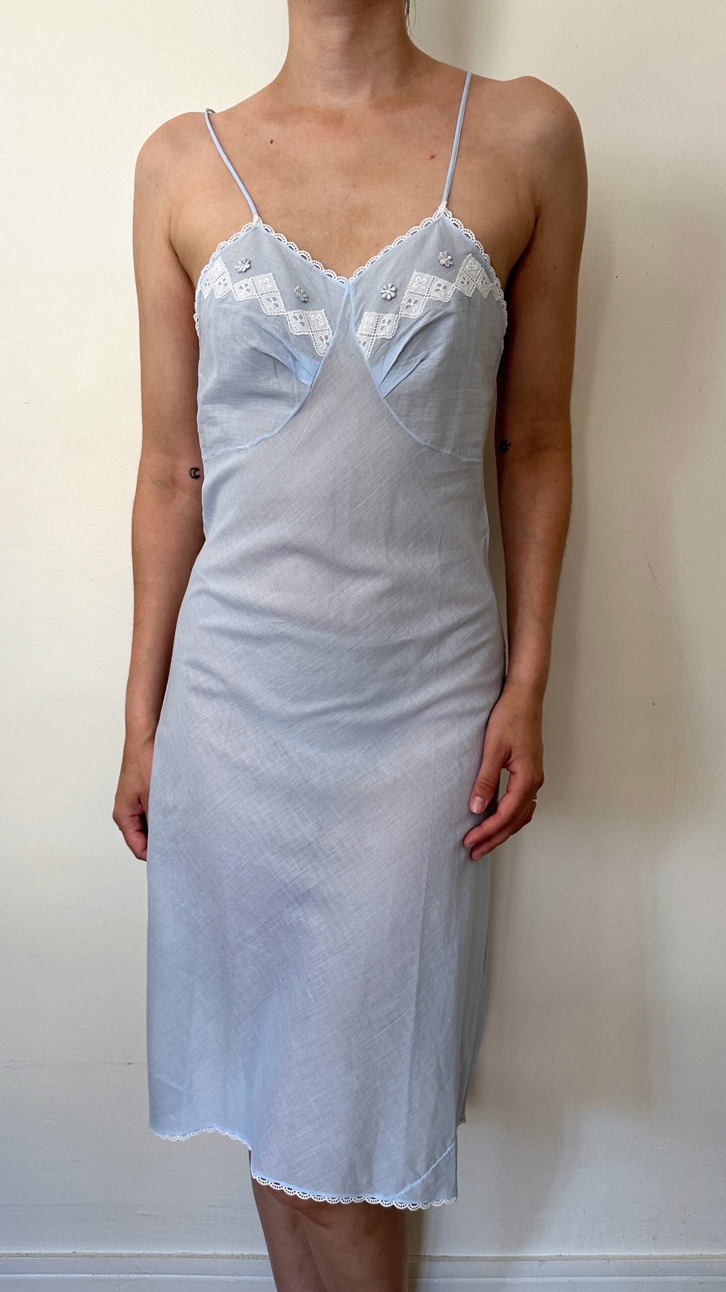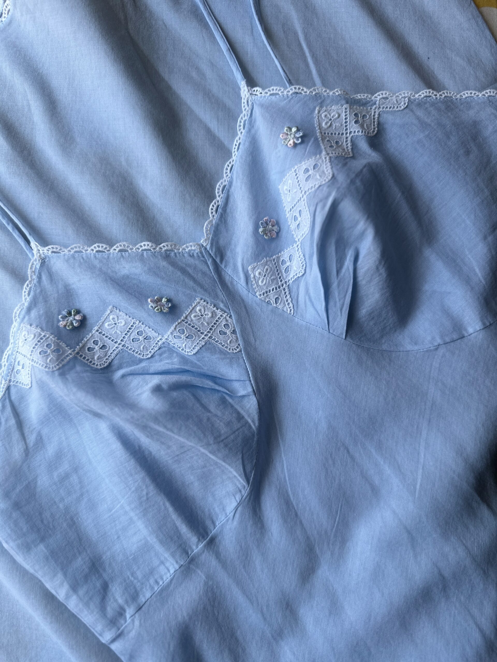 Airy and fresh cotton vintage dress with beautiful floral embroidery.
