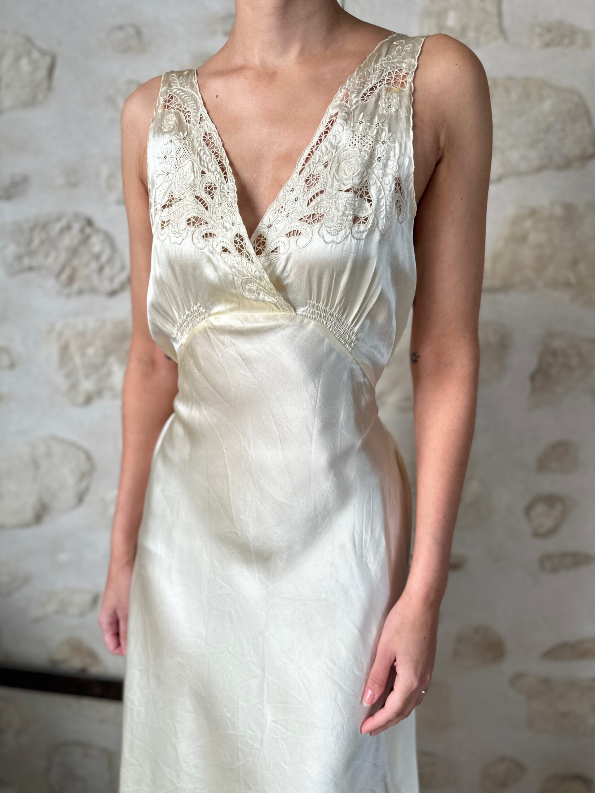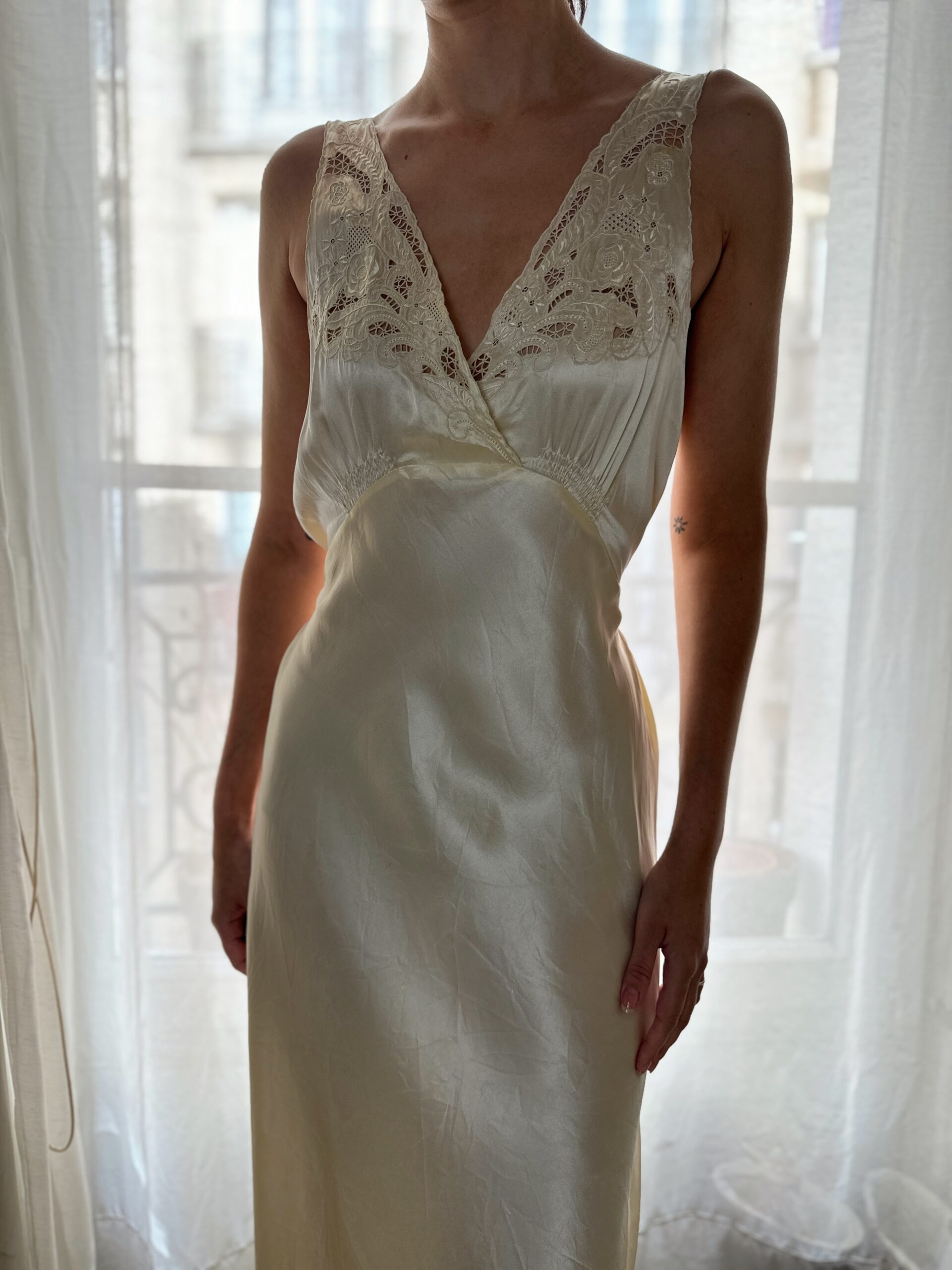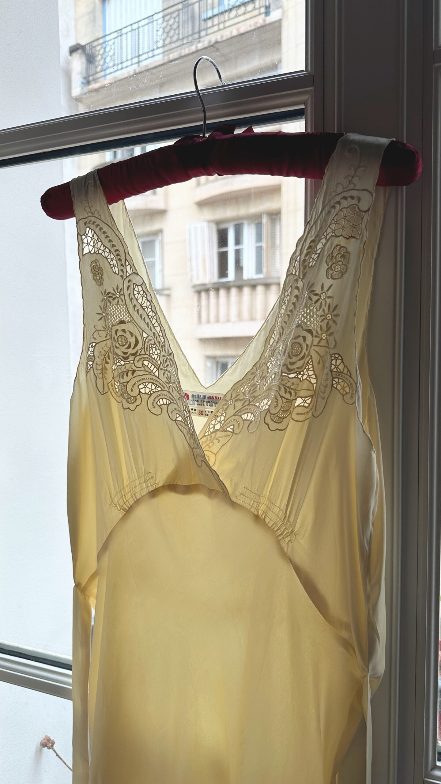 An incredible butter yellow pure silk nightgown from the 20th century.
