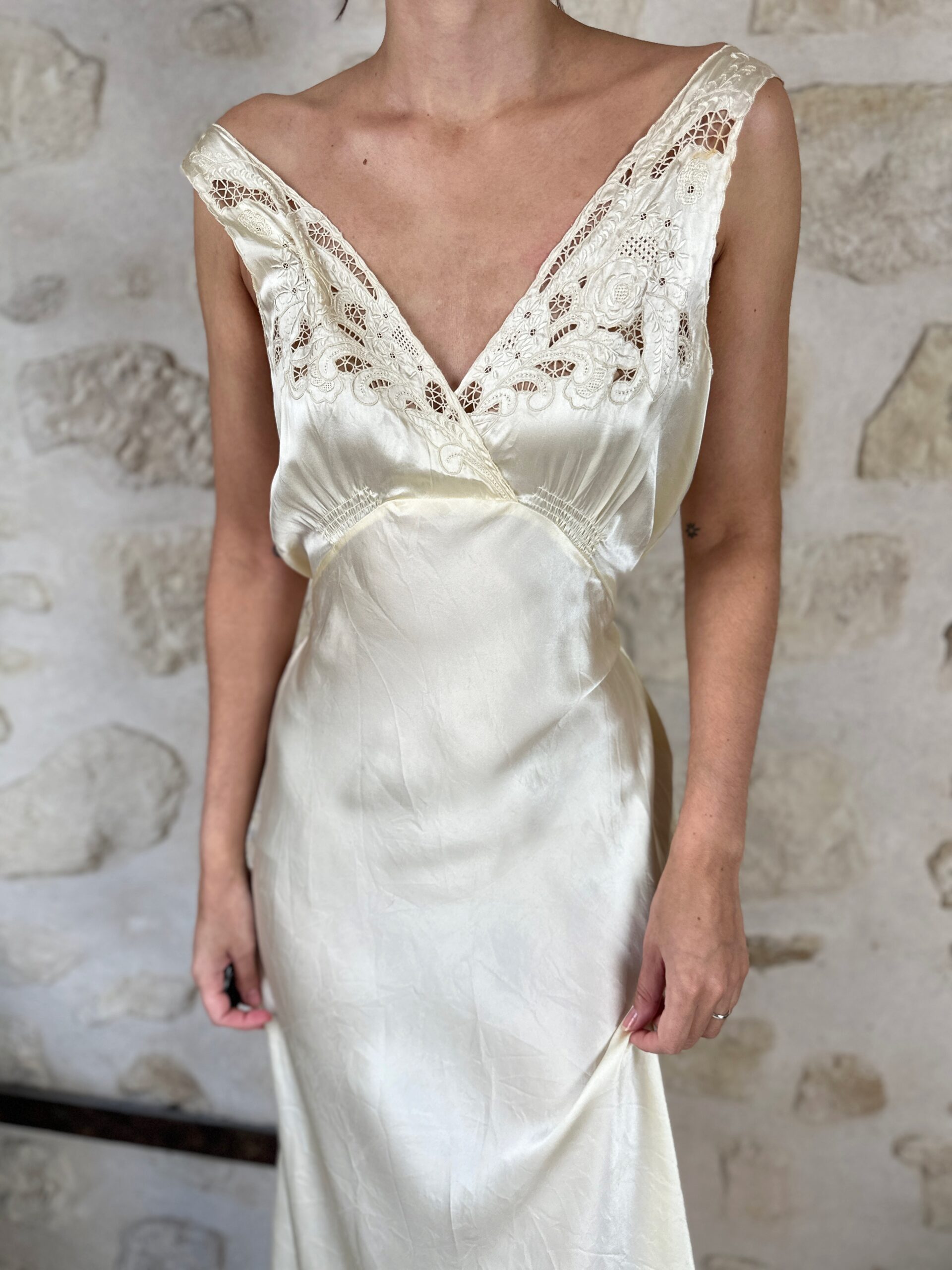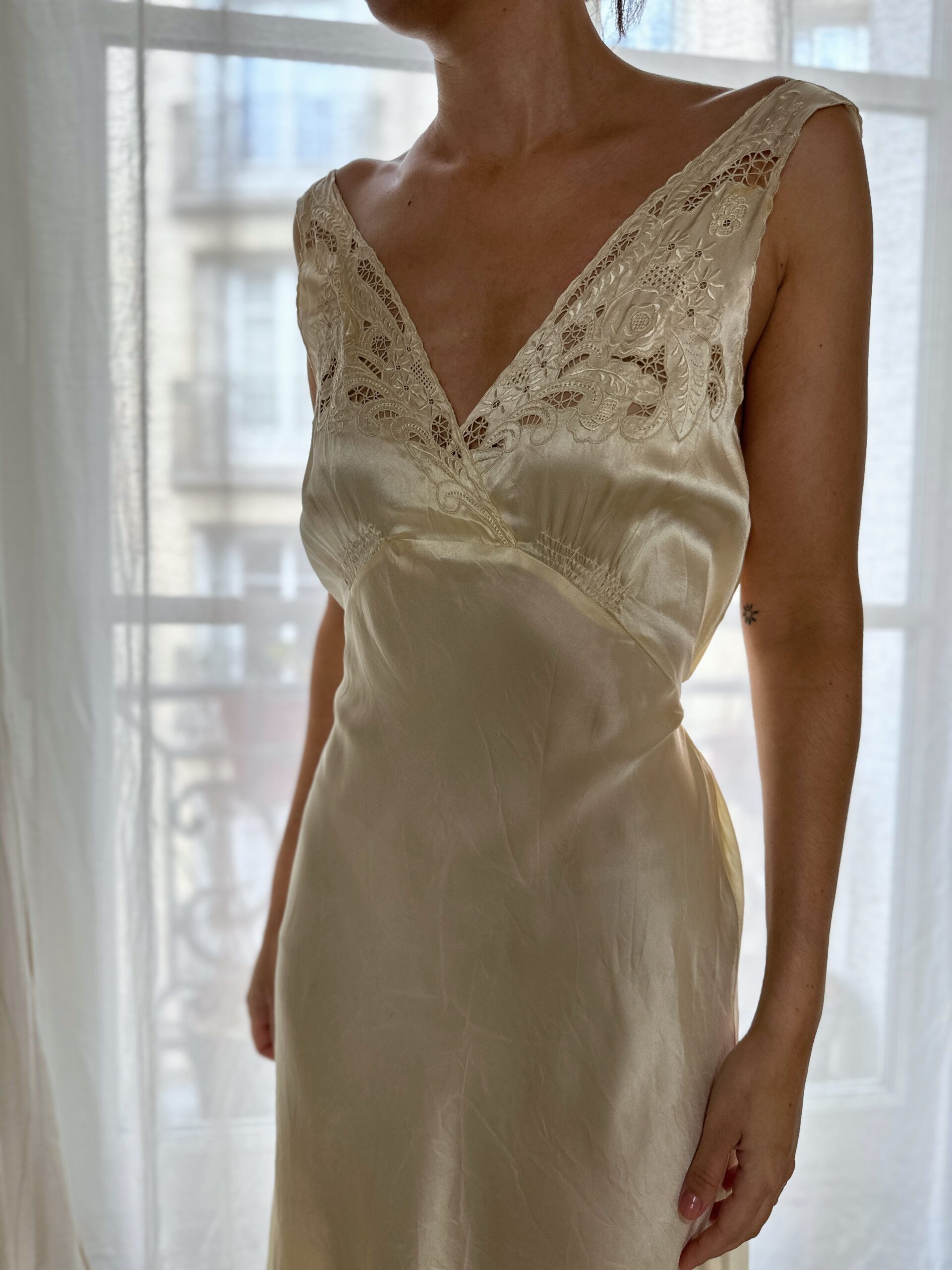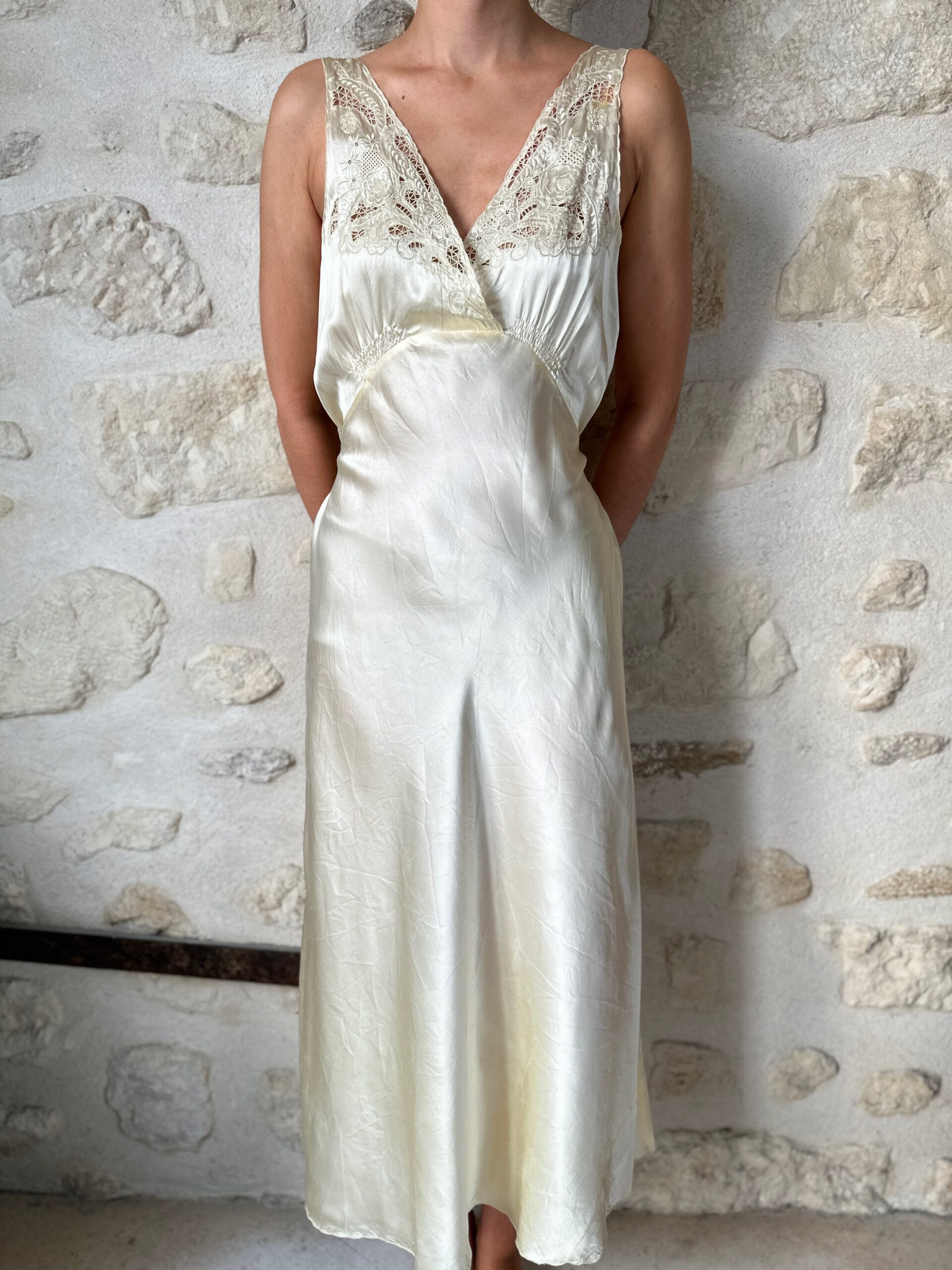 An incredible butter yellow pure silk nightgown from the 20th century.