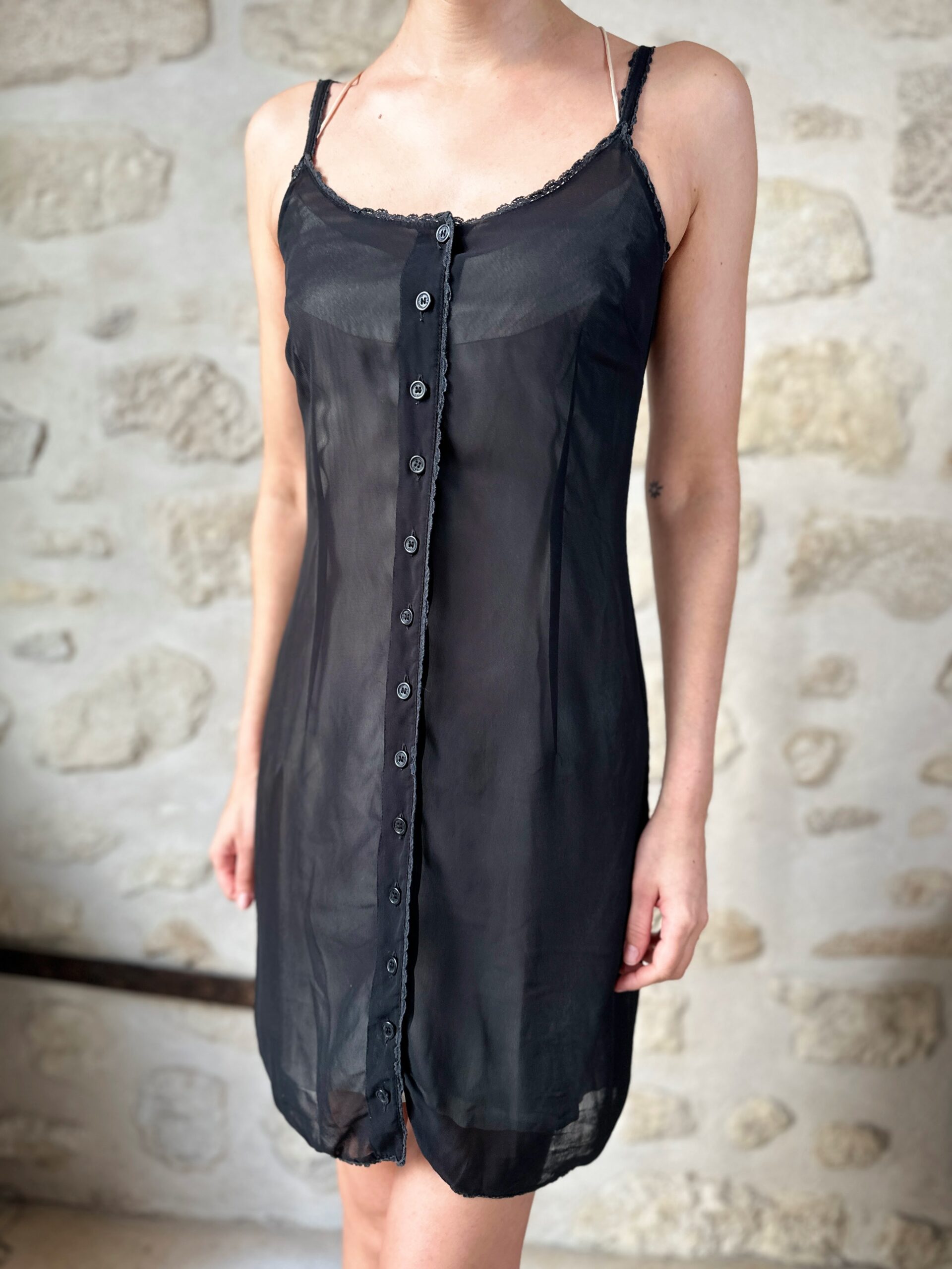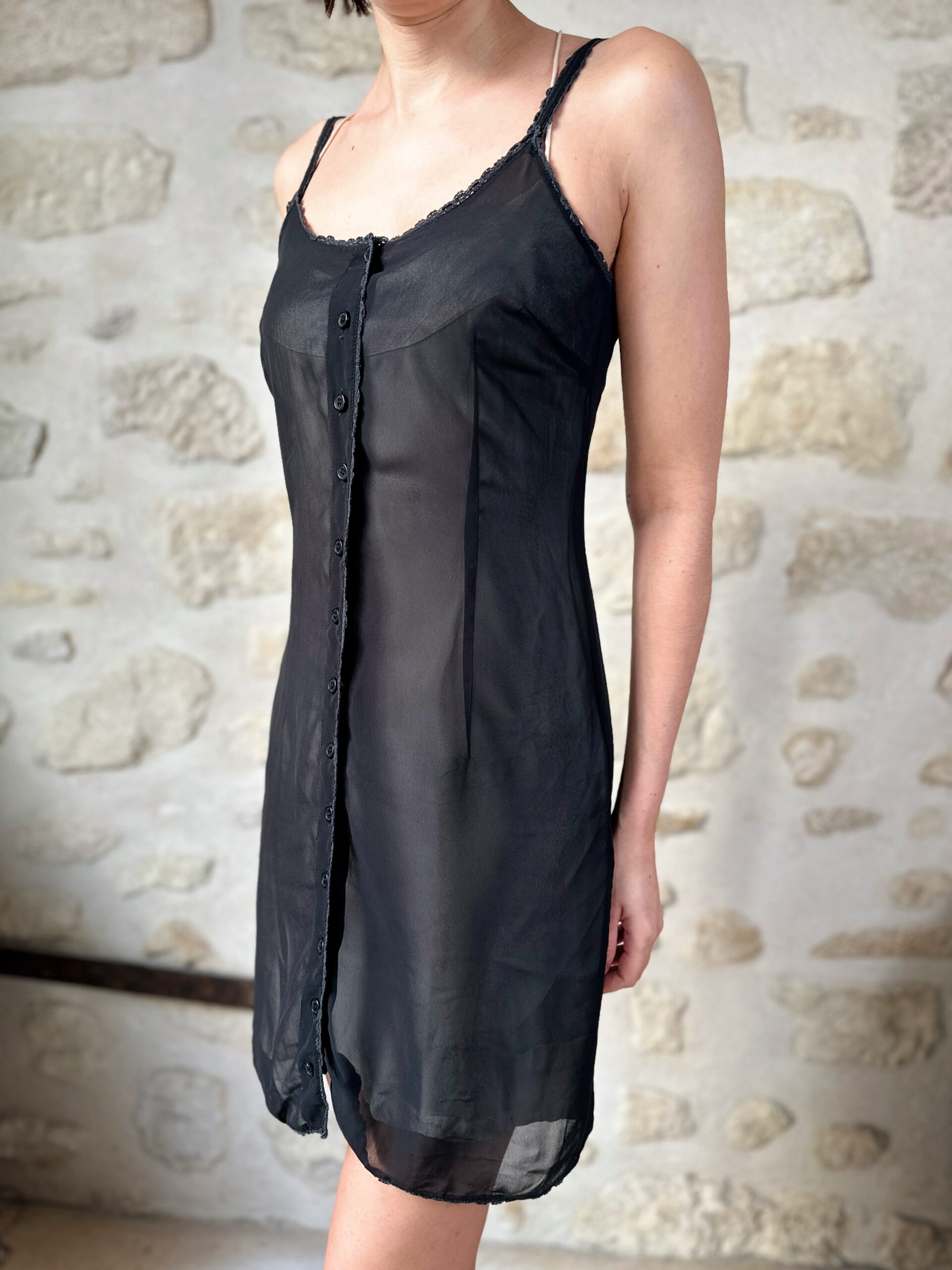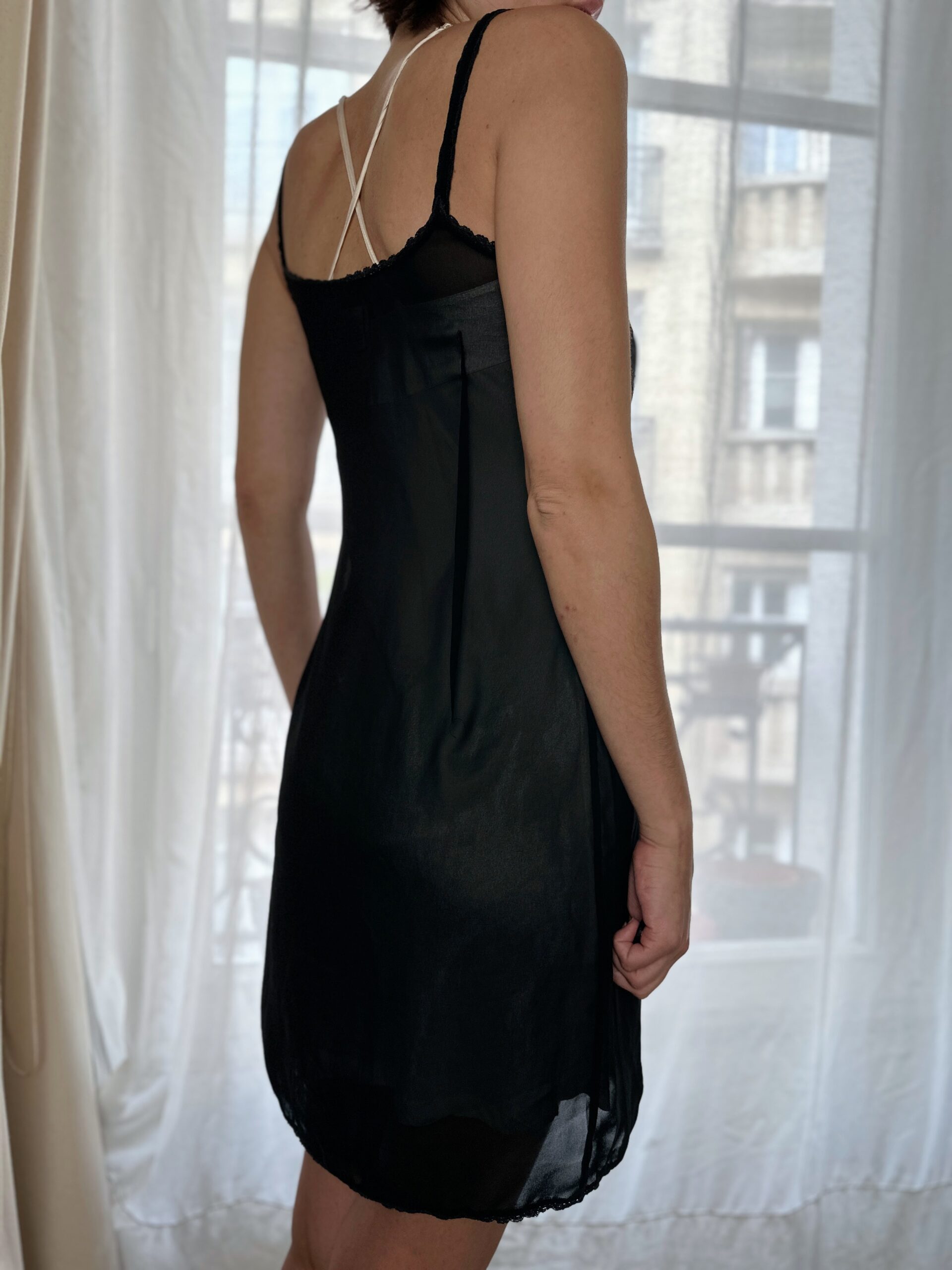 Dolce & Gabbana black slip dress with lace trim. Great layering piece.