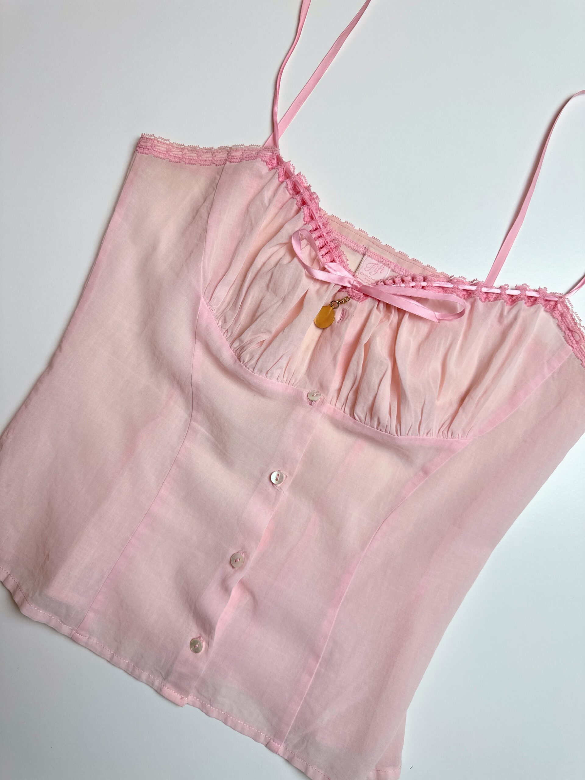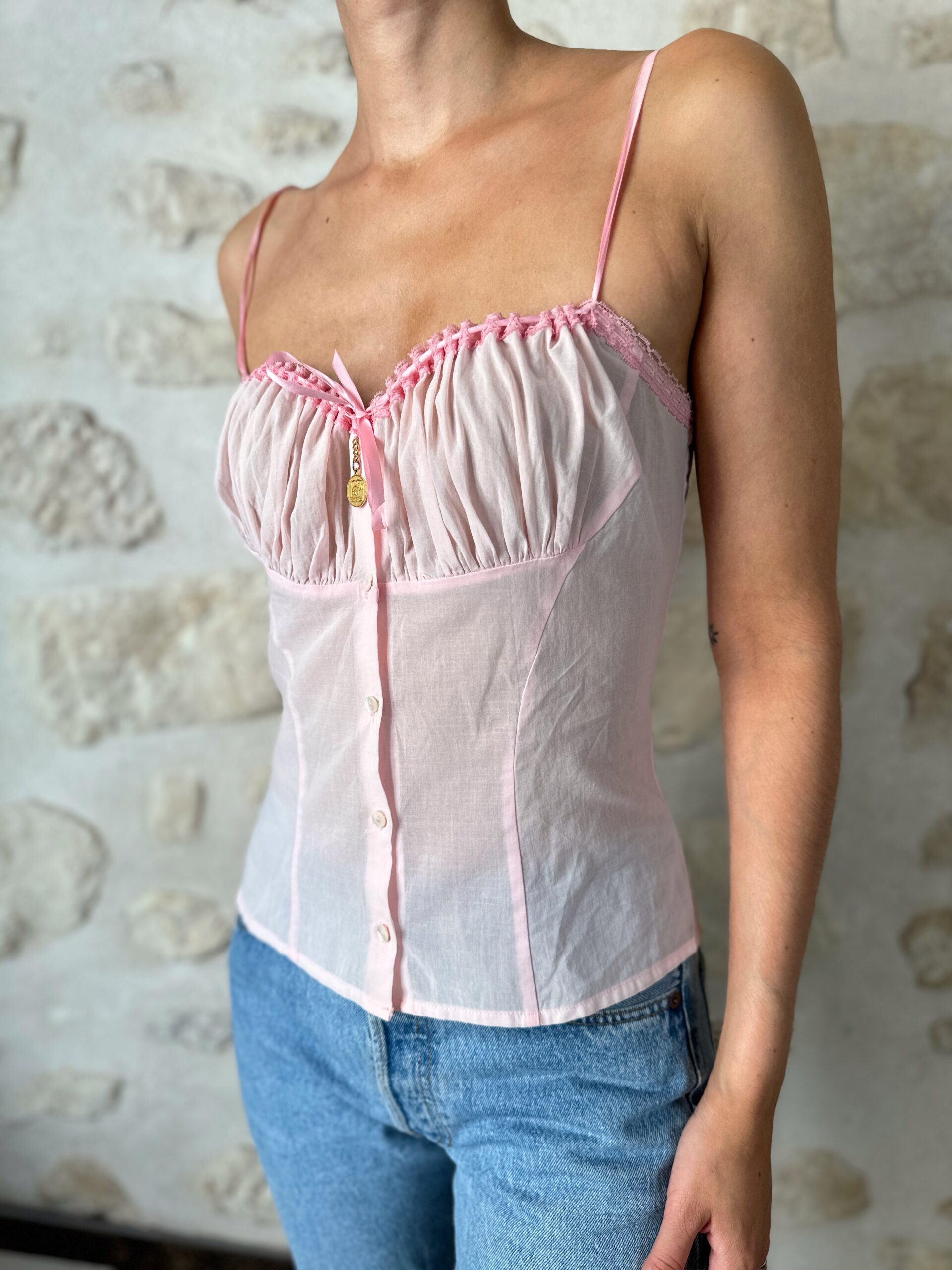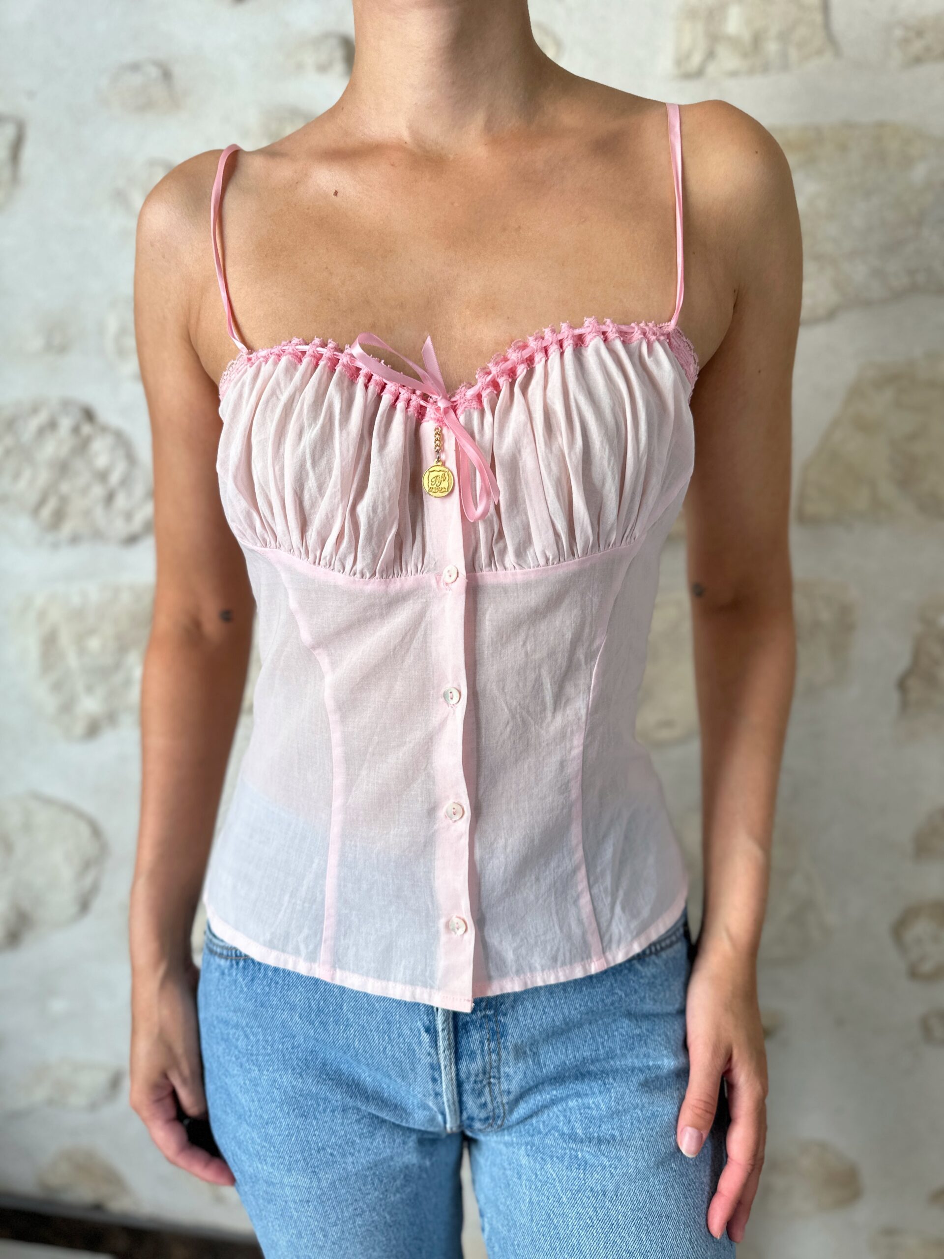 French luxury lingerie designer Fifi Chachnil. Sweet and feminine milkmaid camisole in super soft and lightweight cotton.
