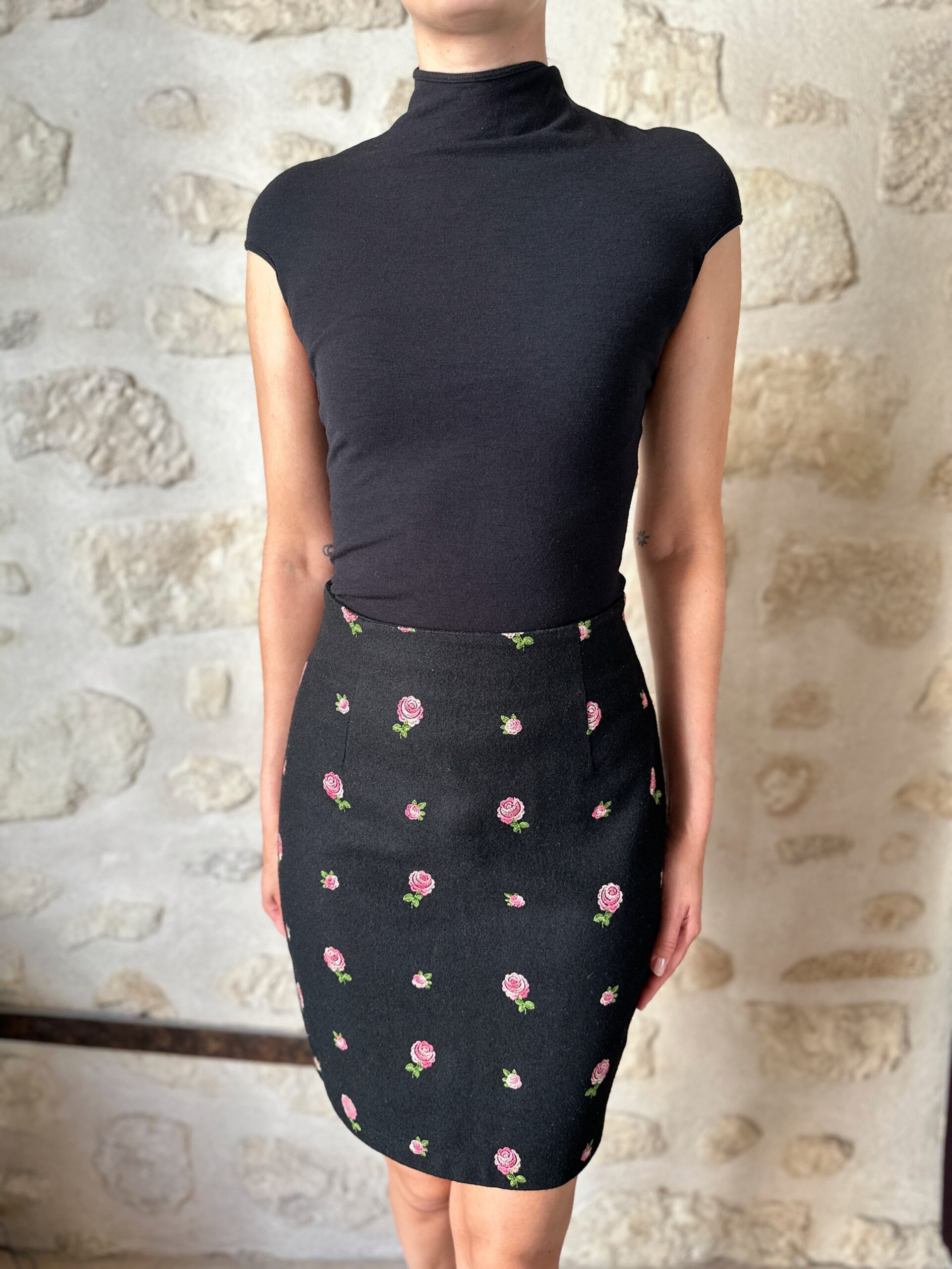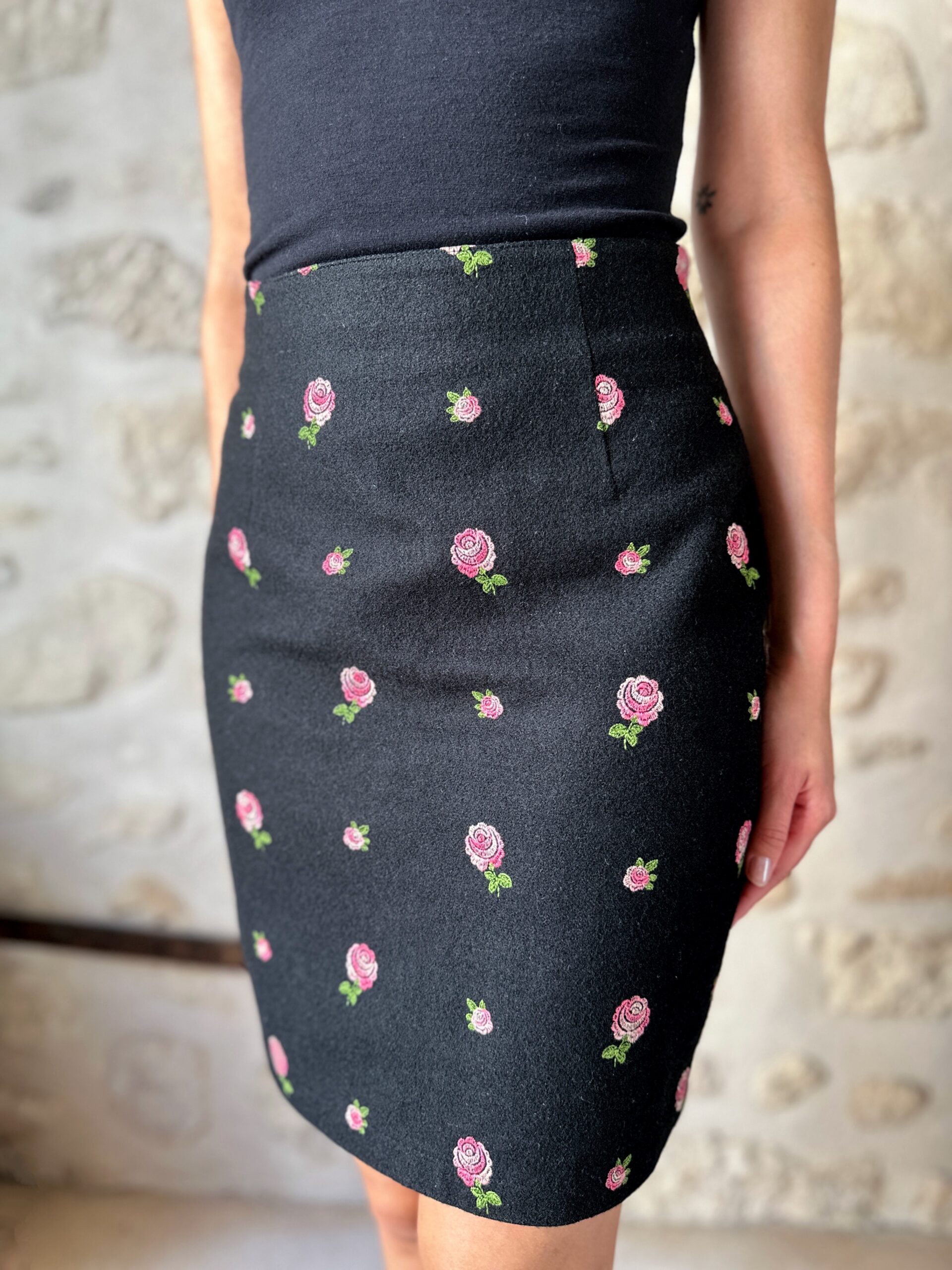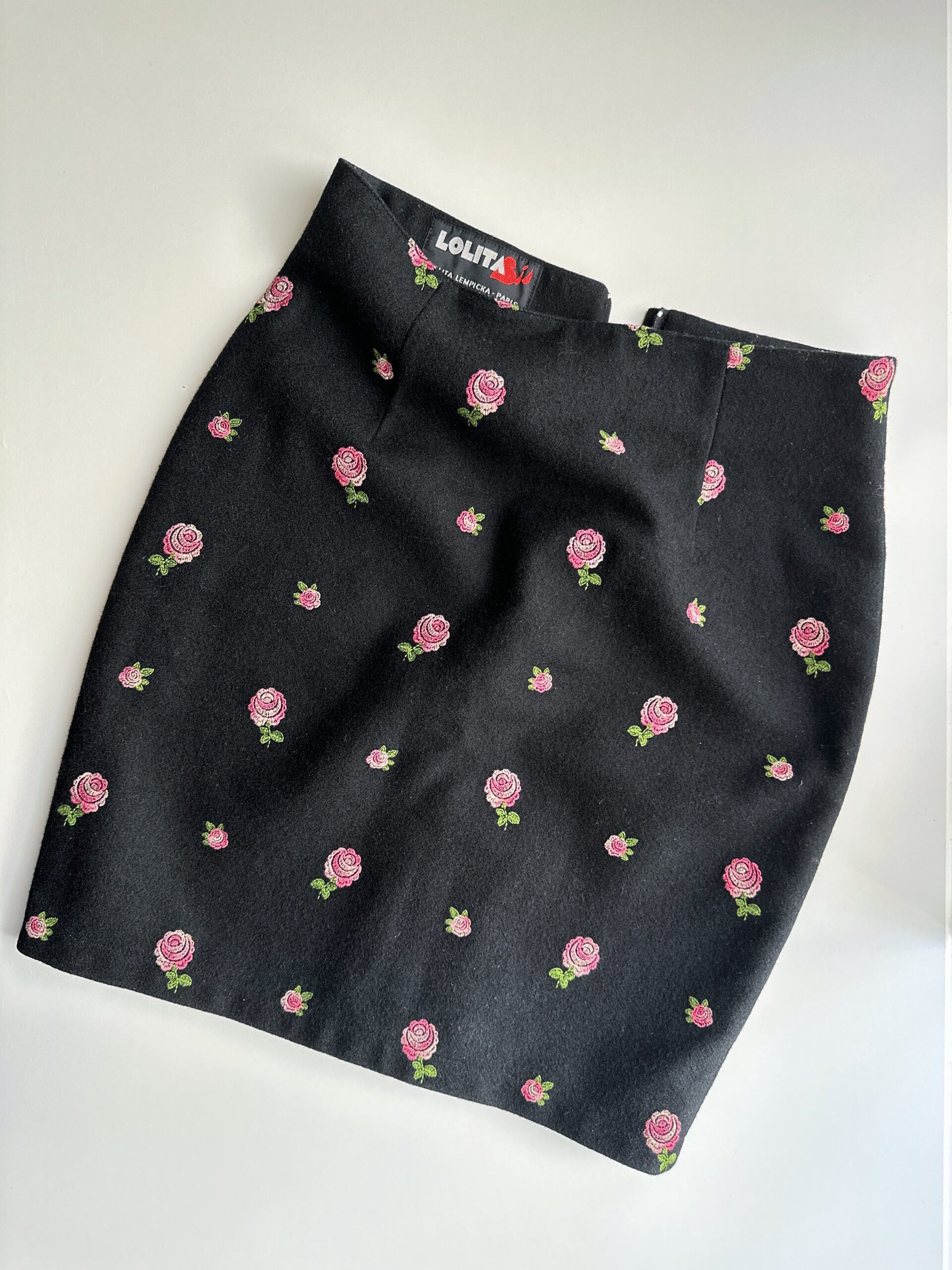 Wool rose motif pencil skirt from vintage Lolita Lempicka Bis label.