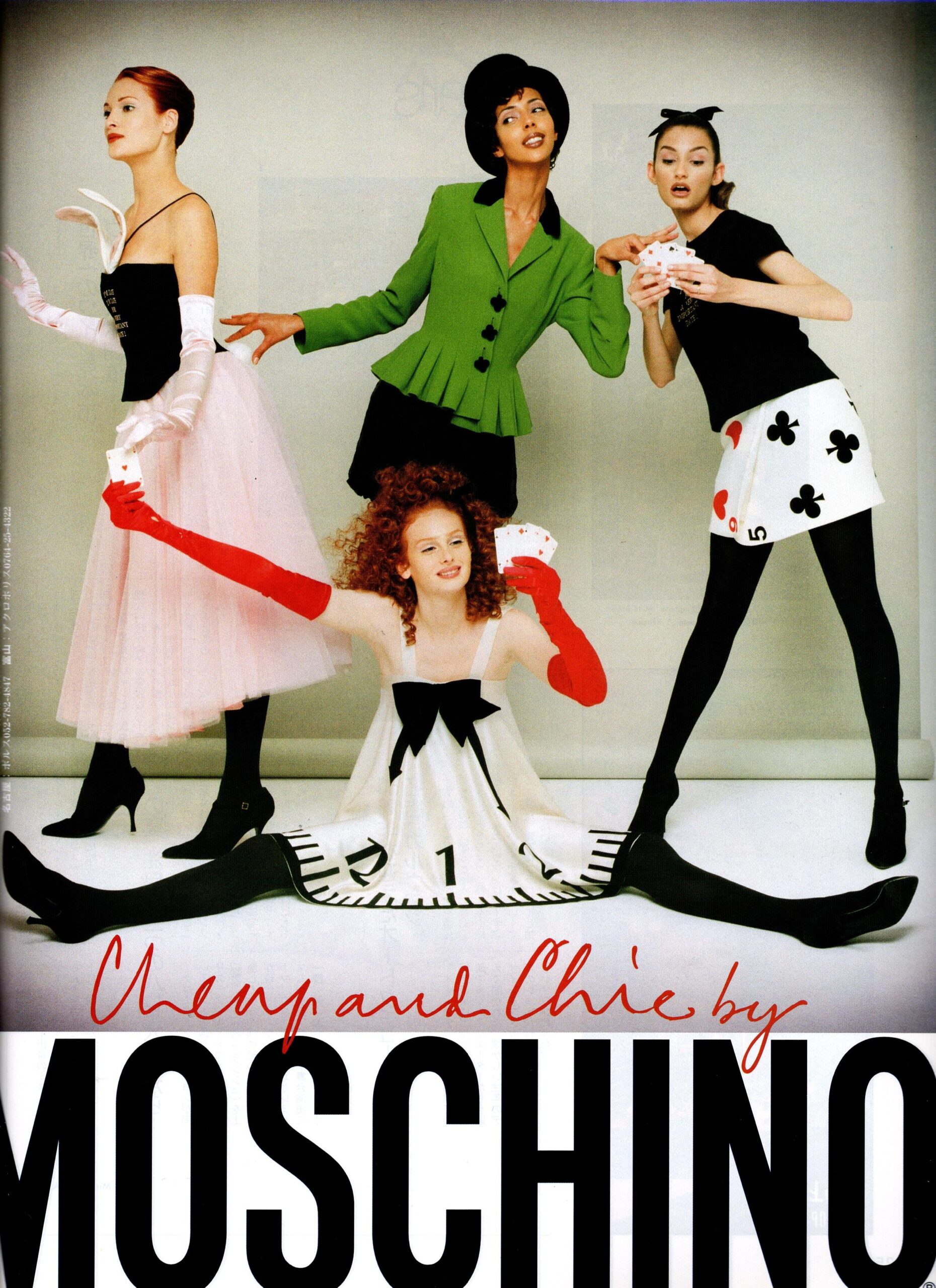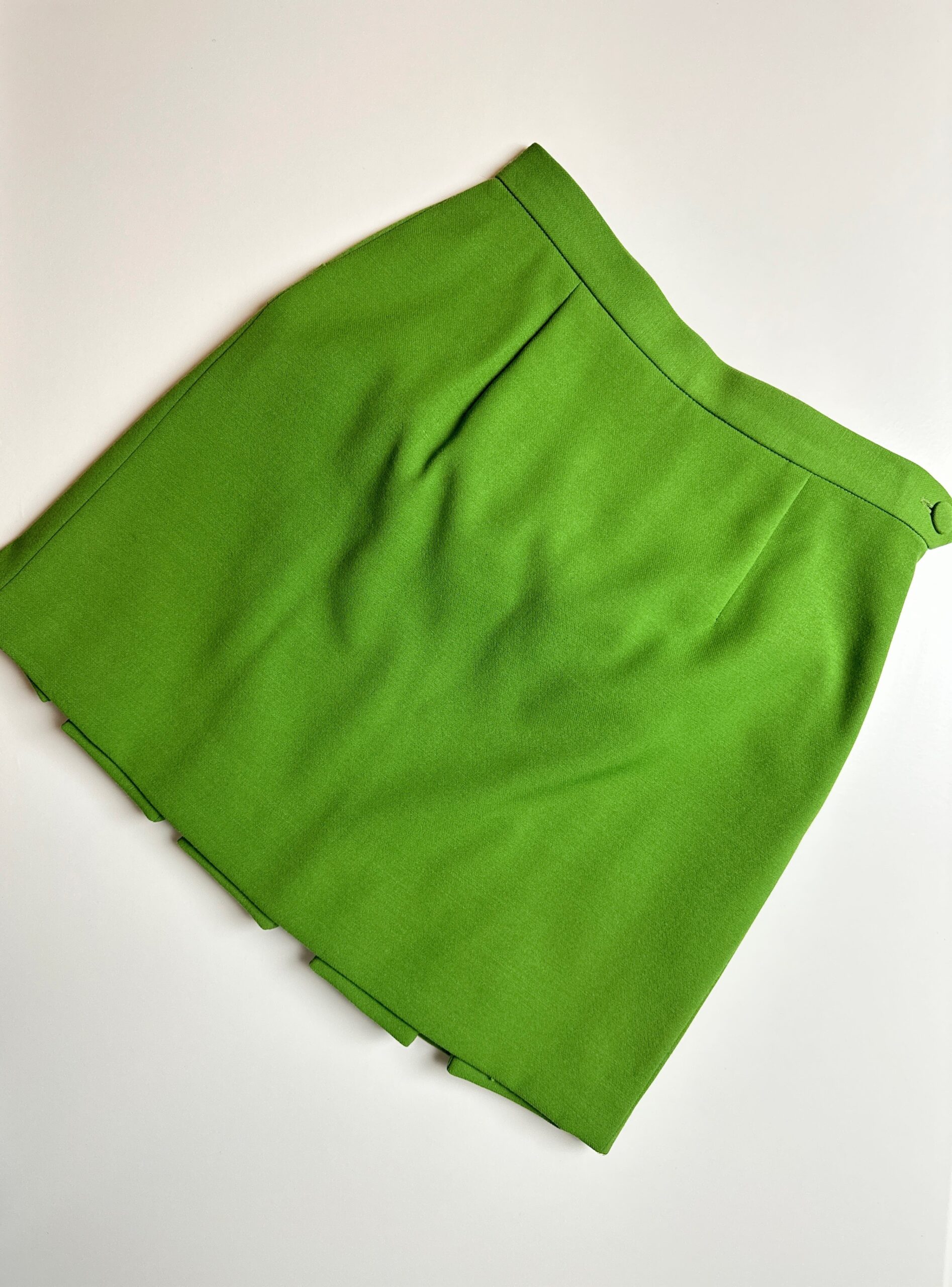 1995 Moschino Cheap and Chic skirt from the Alice in Wonderland collection. Bright green with back pleats and a cheeky rear bow. Excellent condition. The matching blazer was worn by Gloria Shelby in the ad campaign.