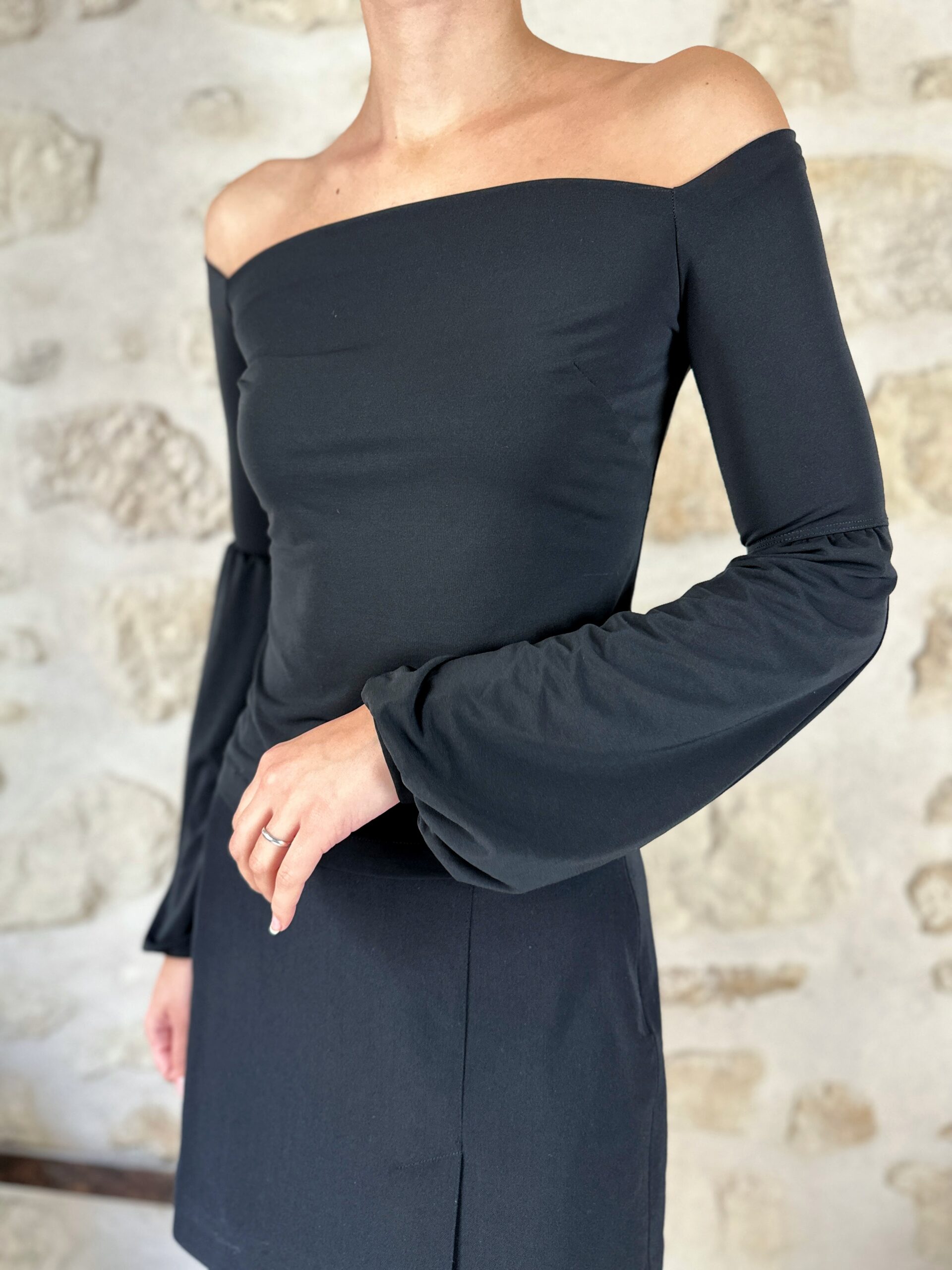 Off-the shoulder fit.