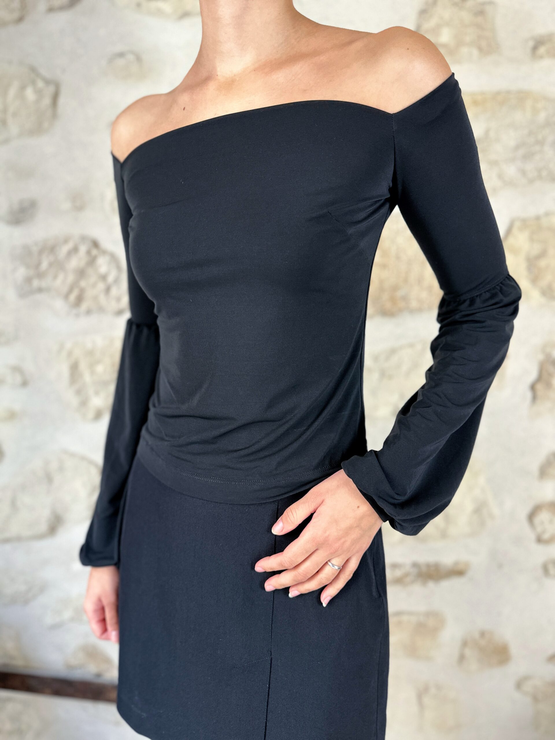 Vintage Plein Sud off the shoulder top with peasant sleeves.