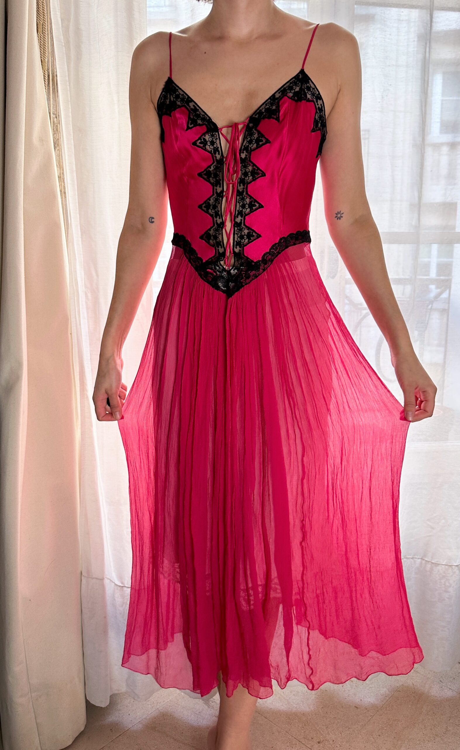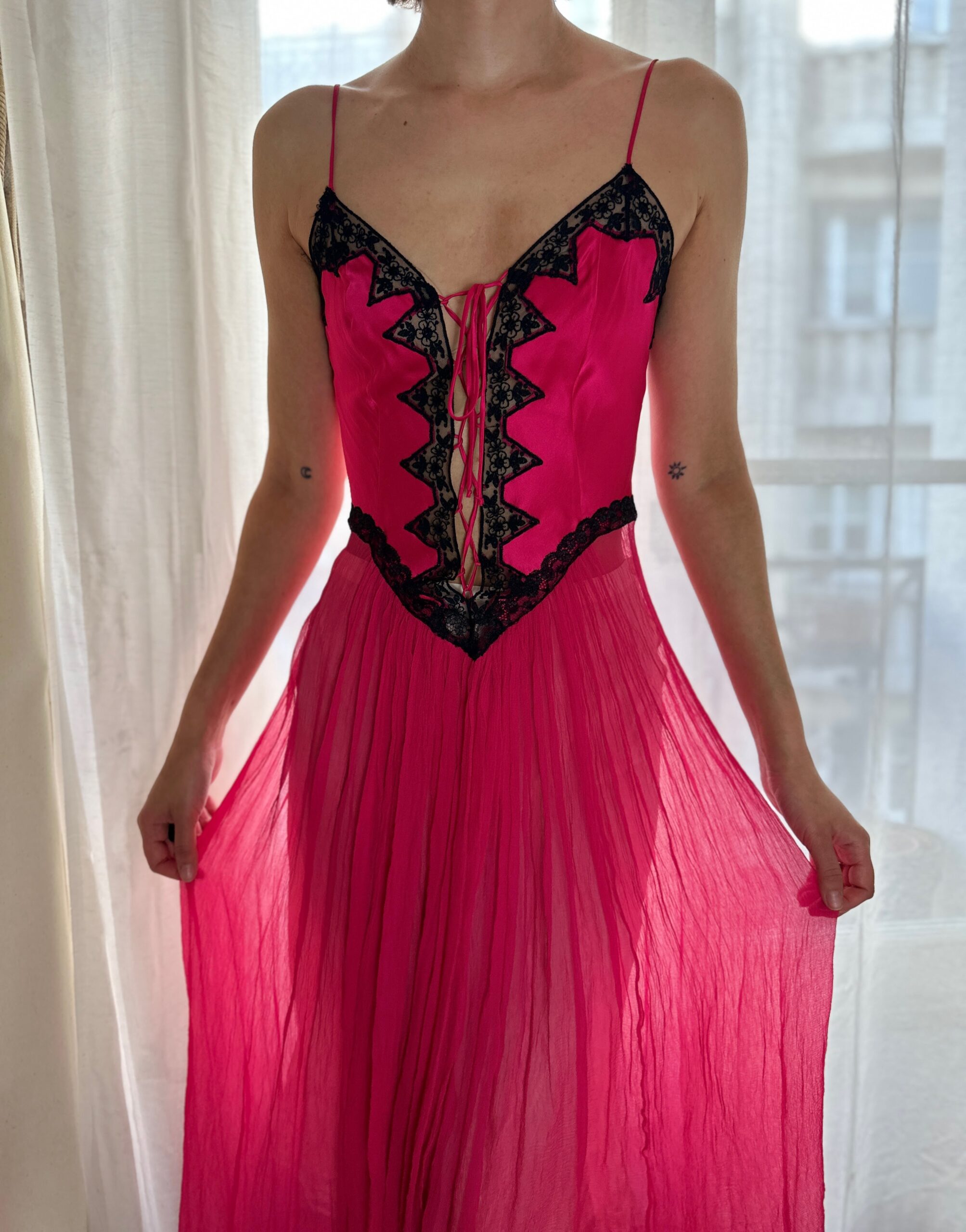 True vintage pieces, made in England. Pure silk with adjustable lacing on the corsage.