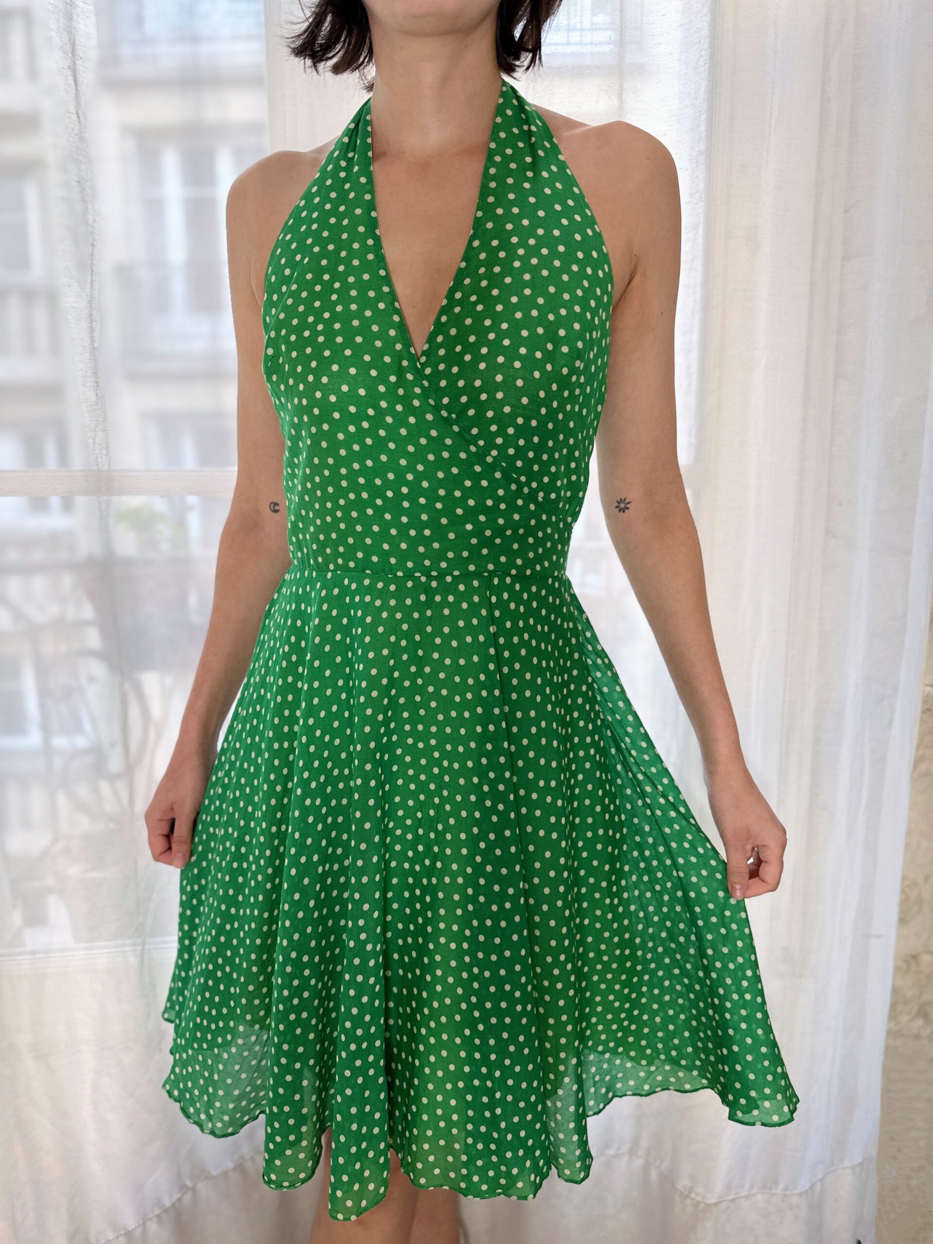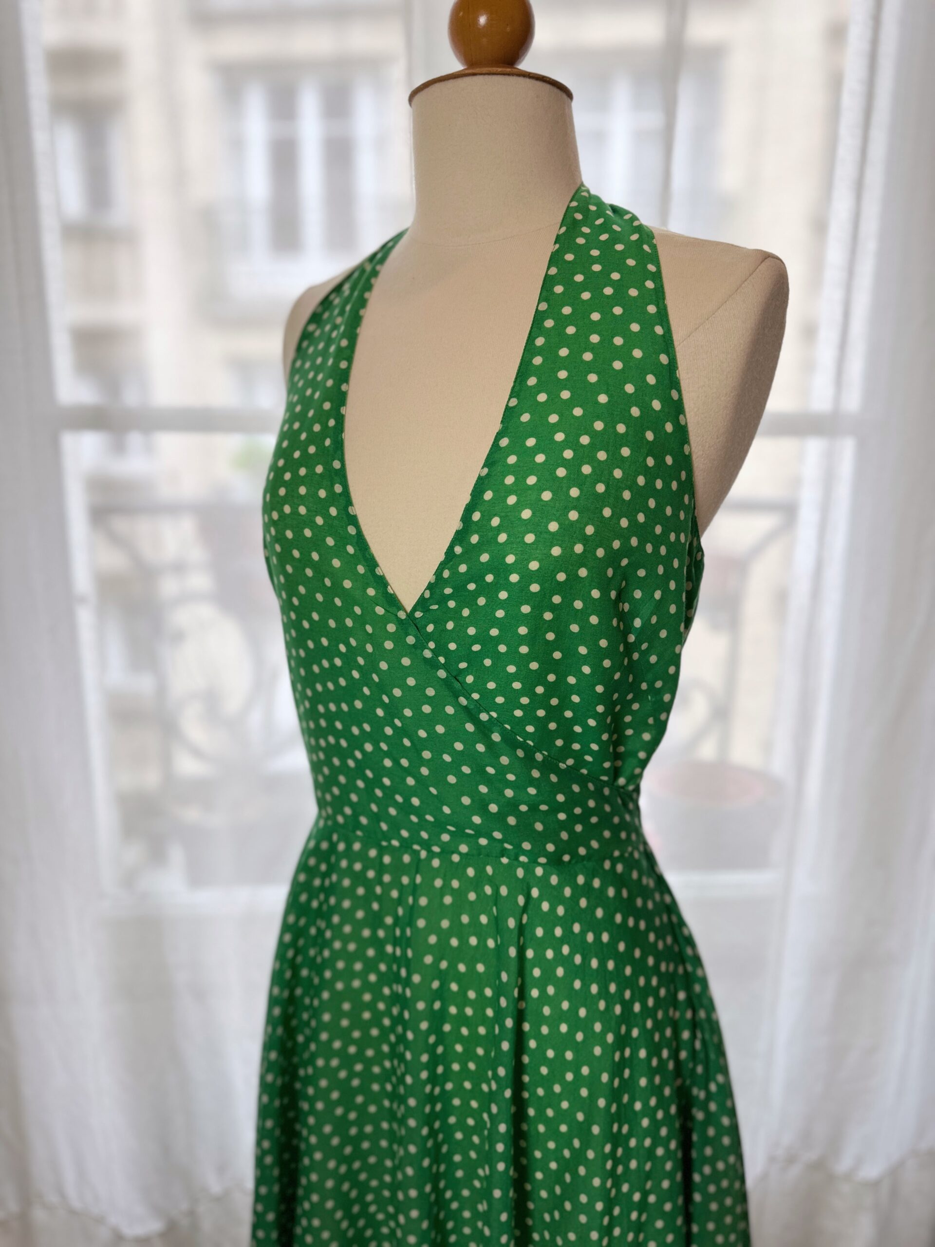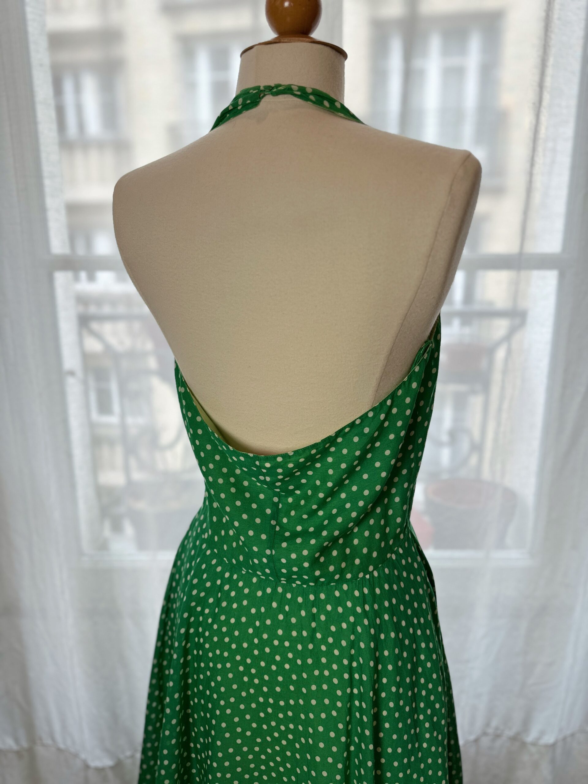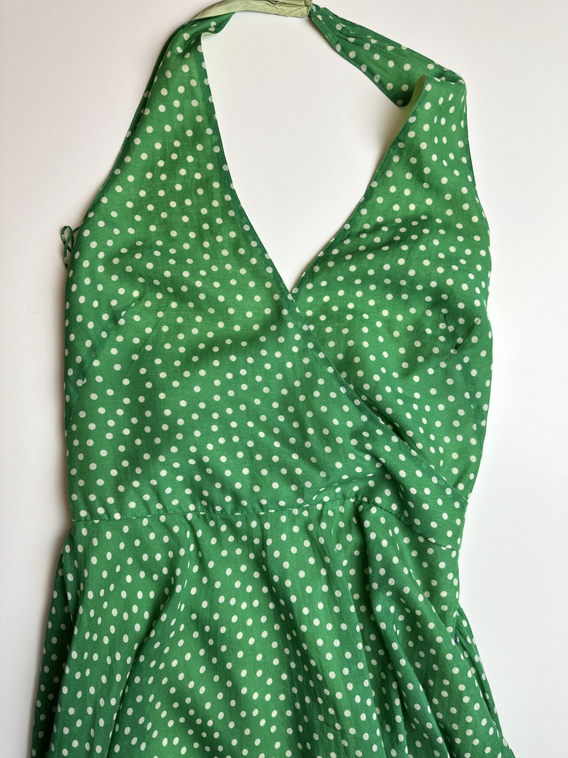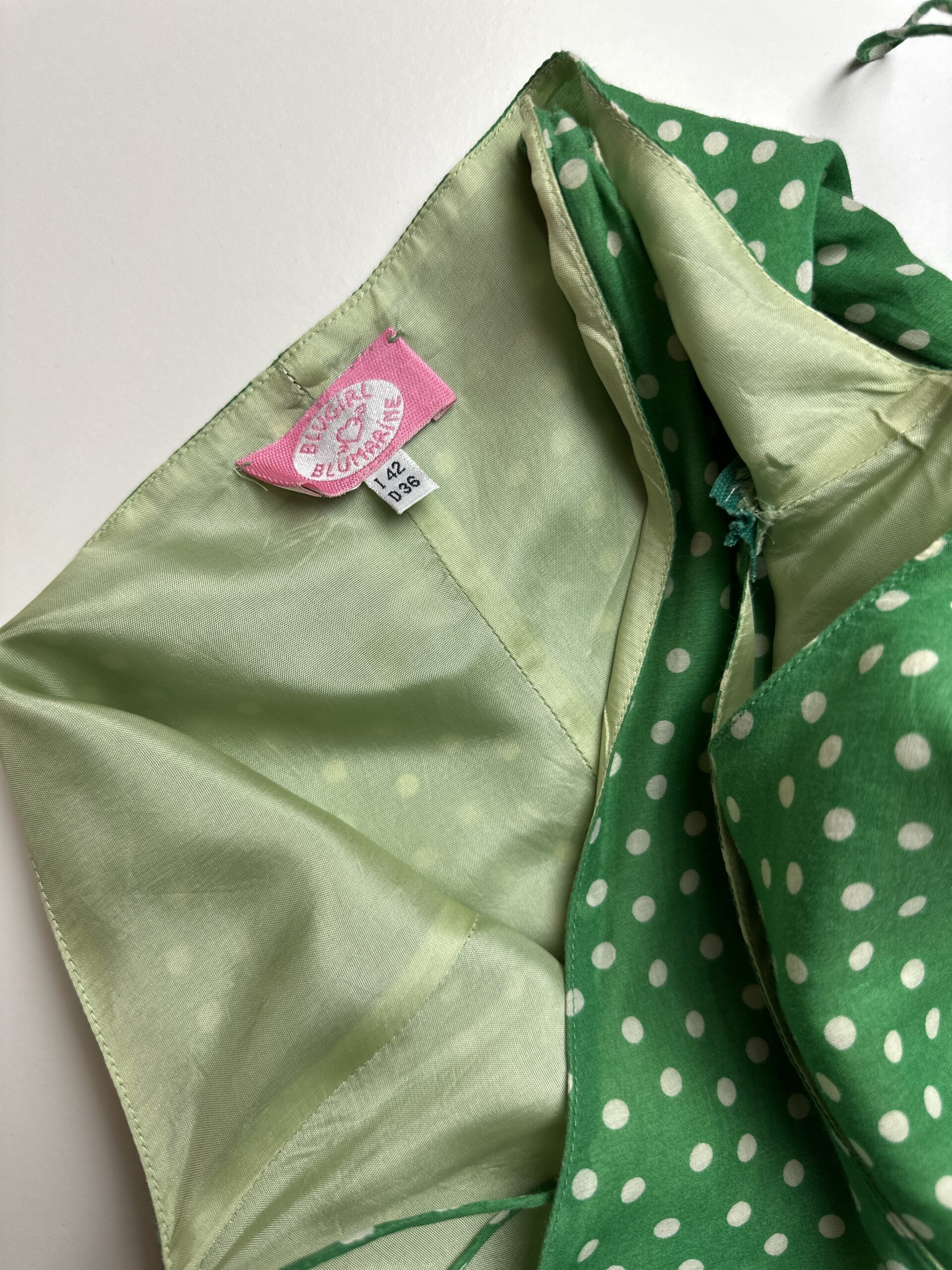 Retro style polka dot dress from vintage label Blugirl Blumarine in vibrant green colour.