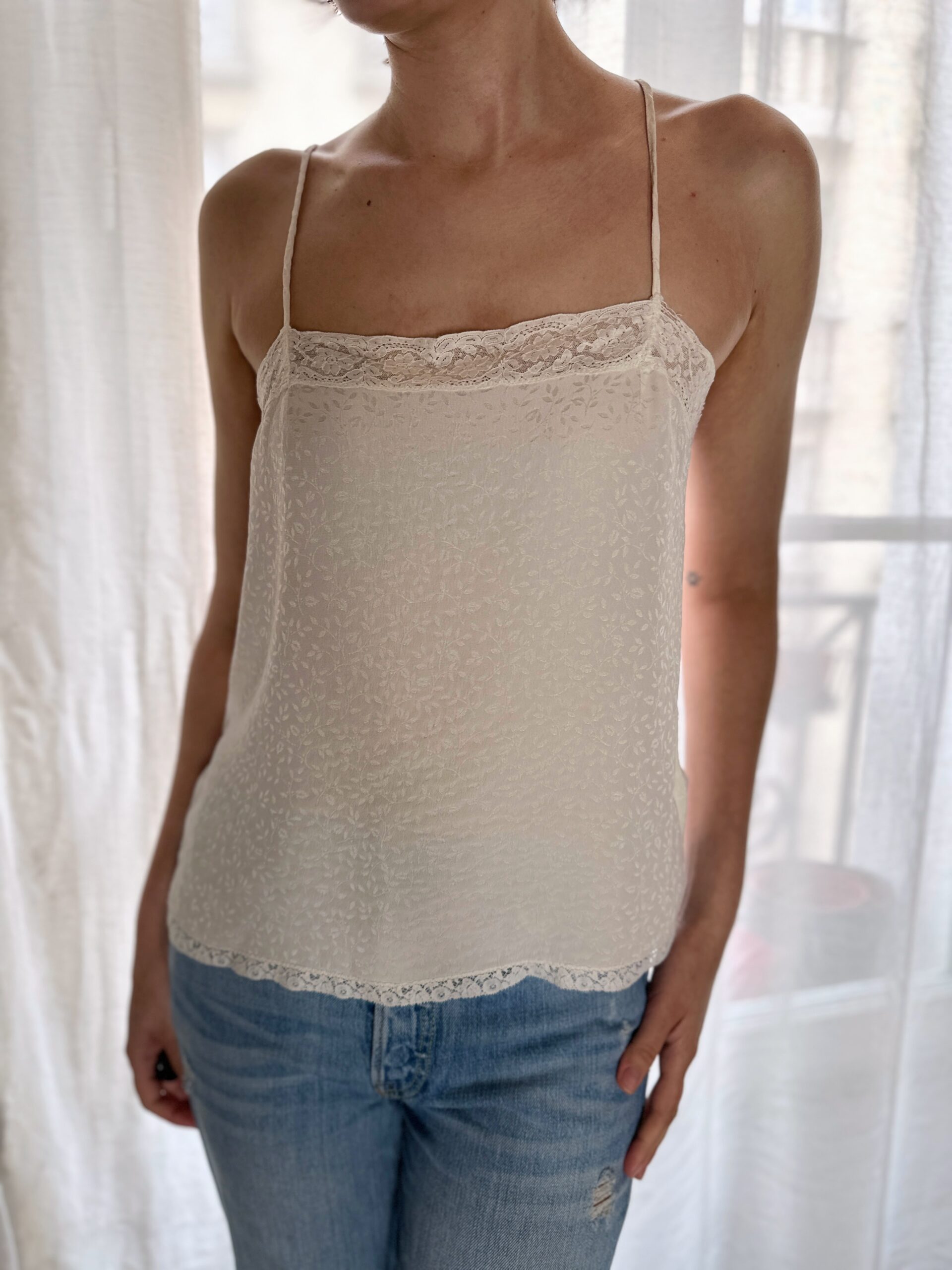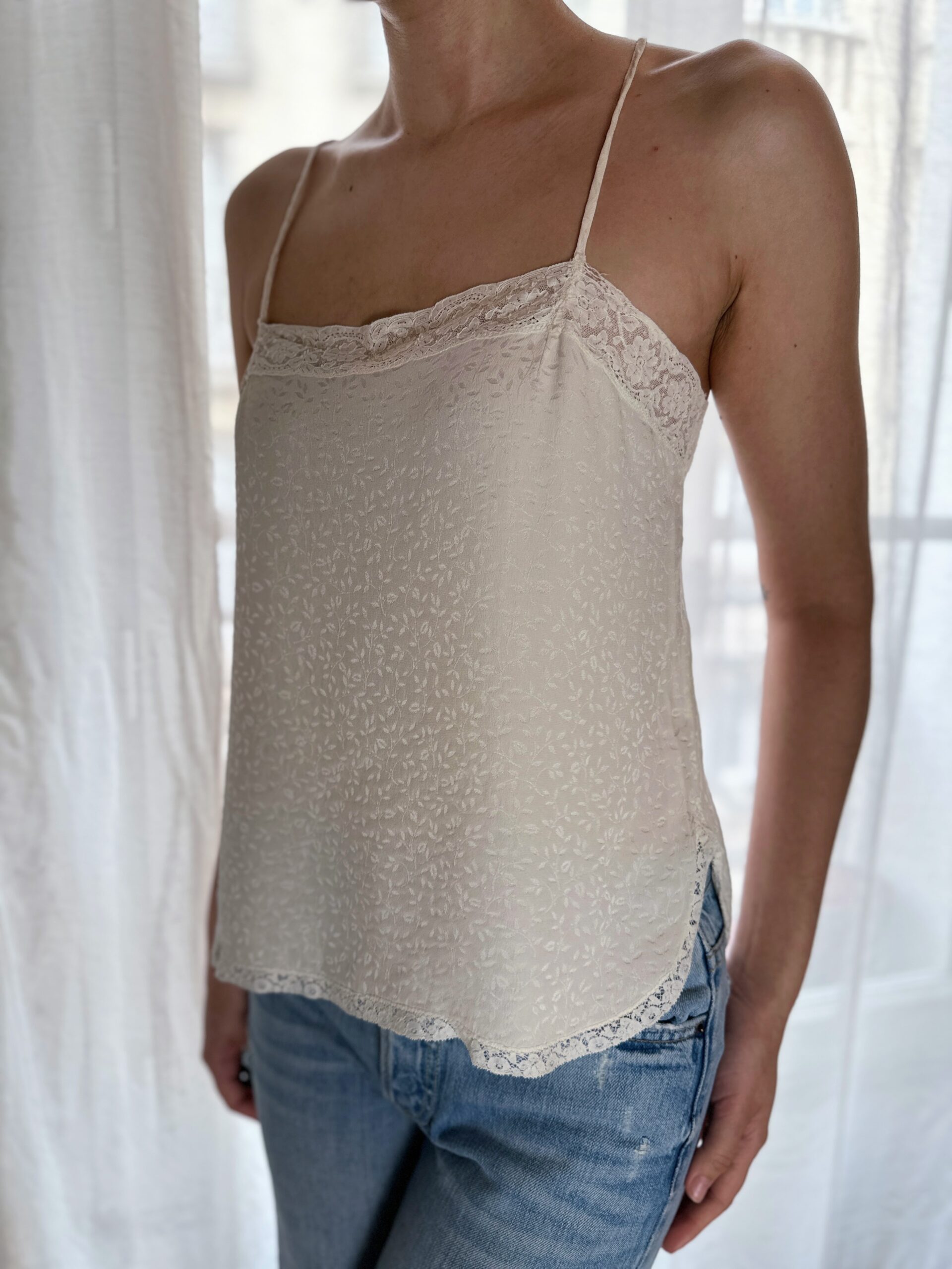 Refined silk camisole, made in France with fine lace.