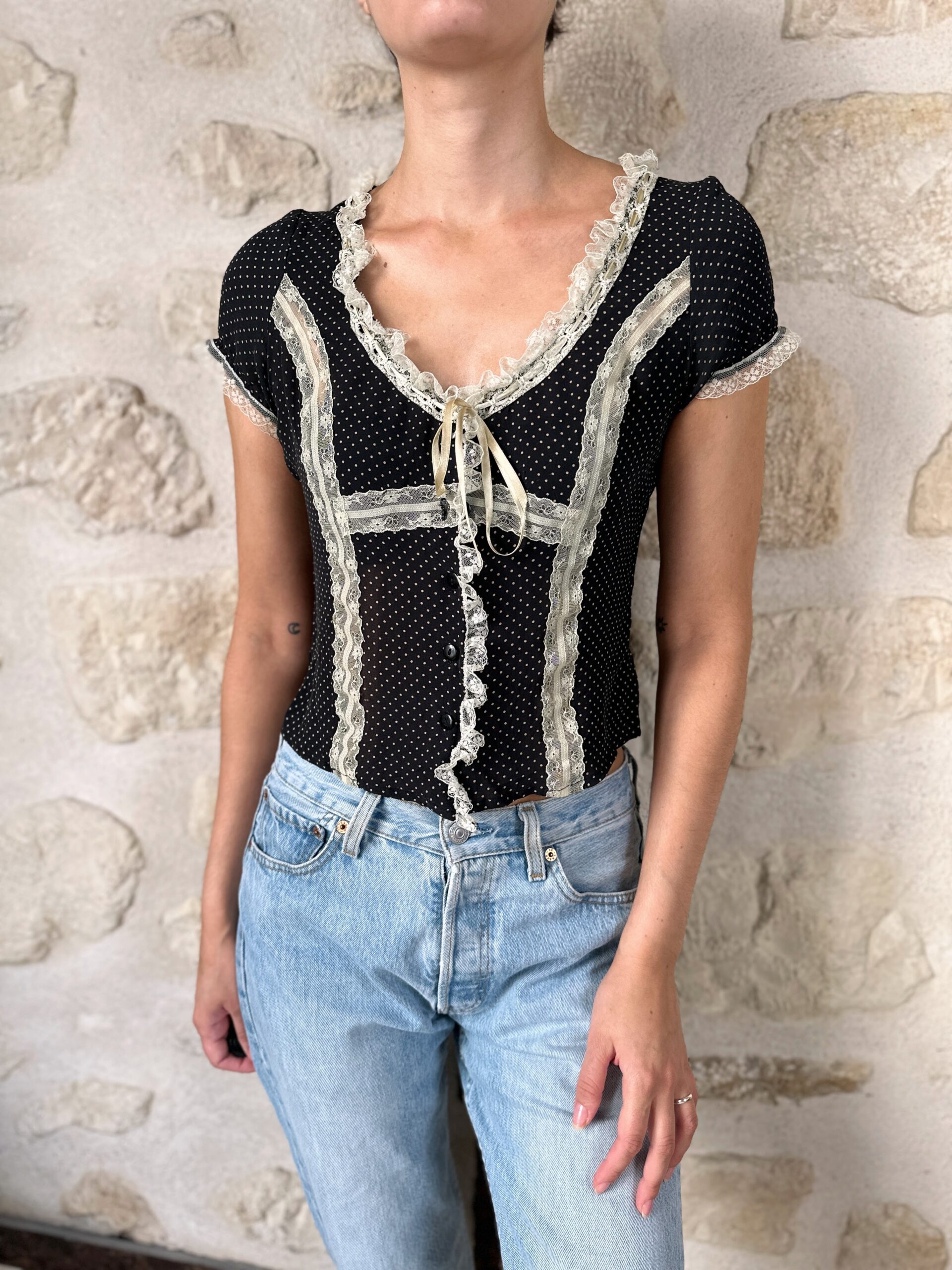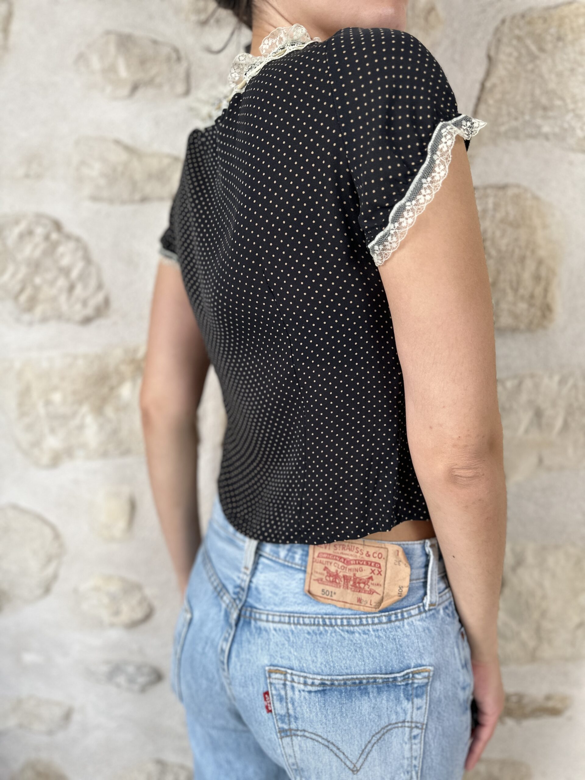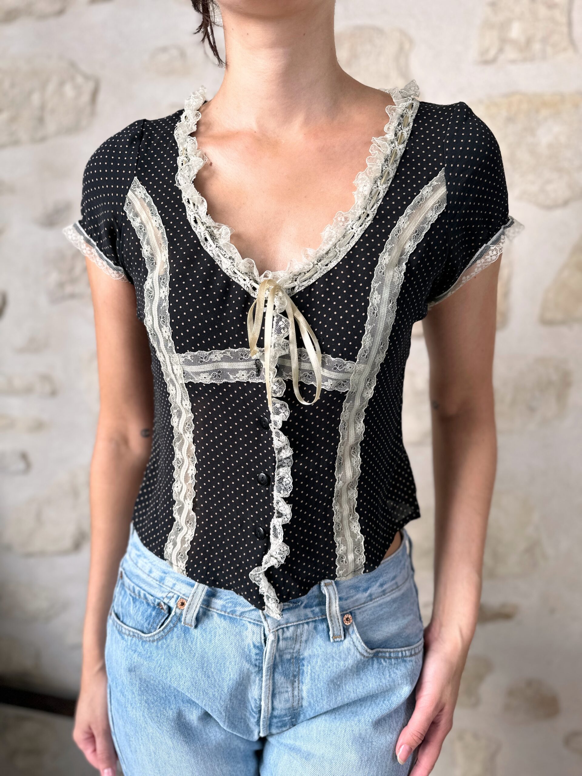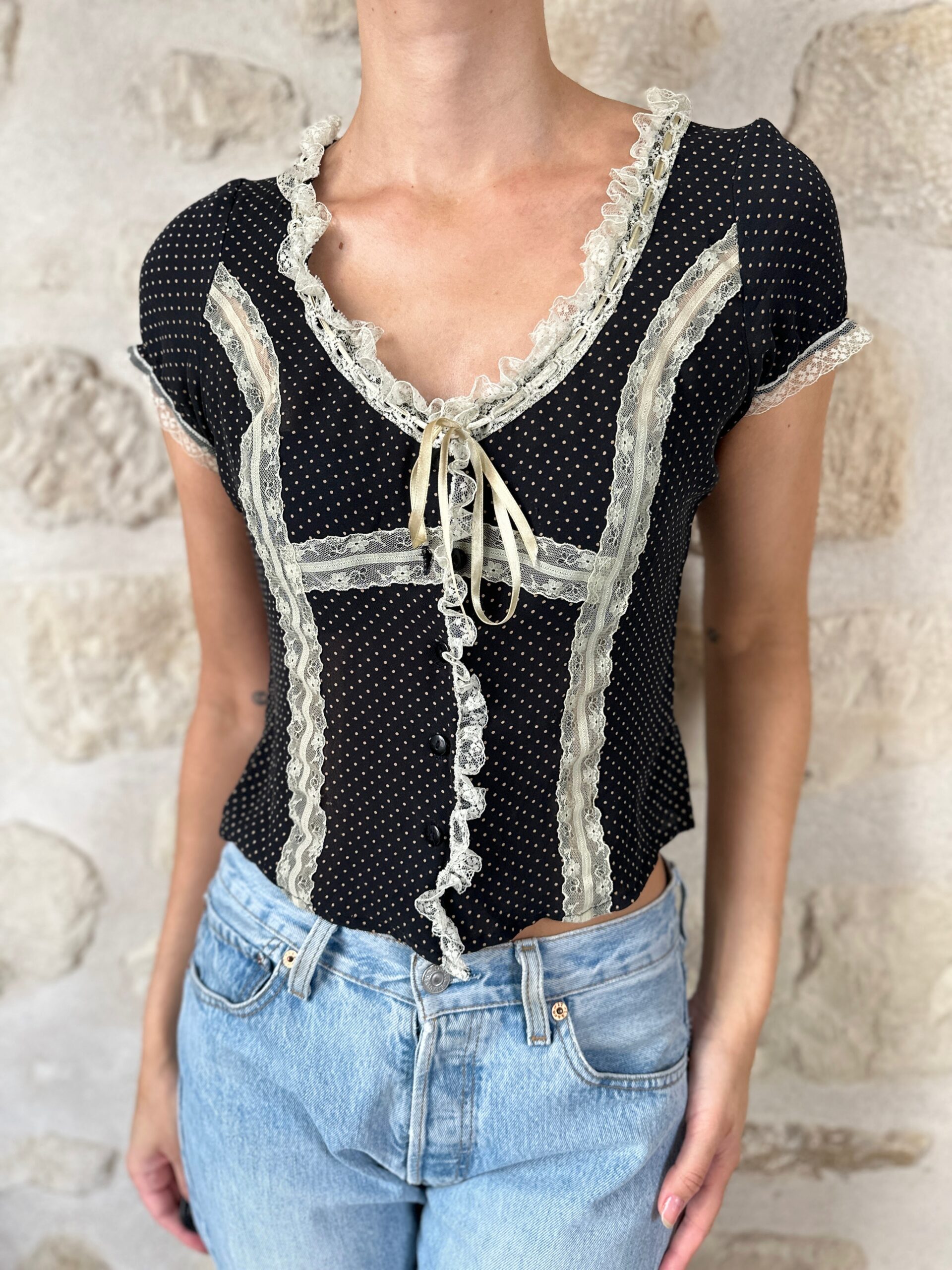 Silk Polka Dot Lace Top