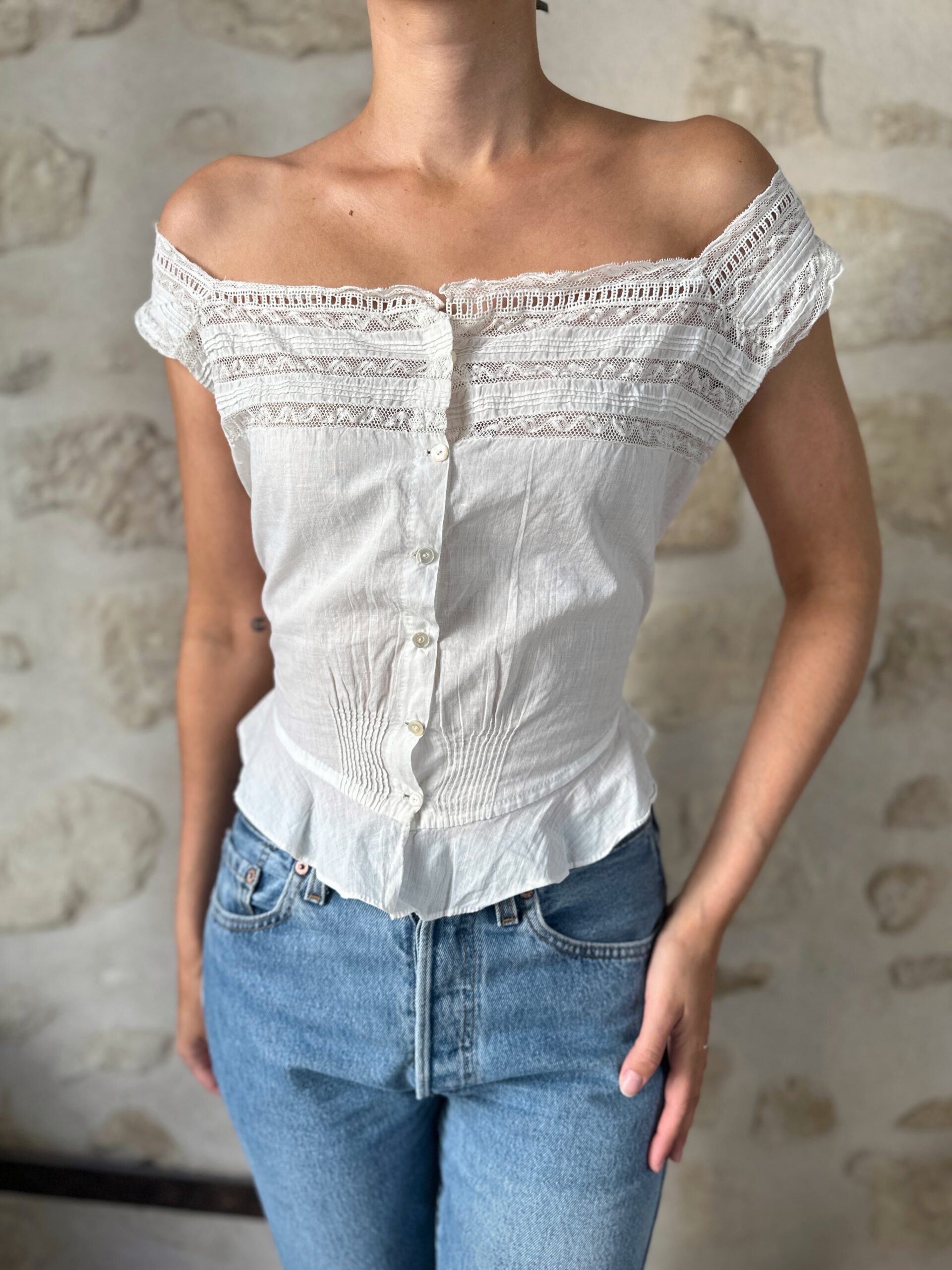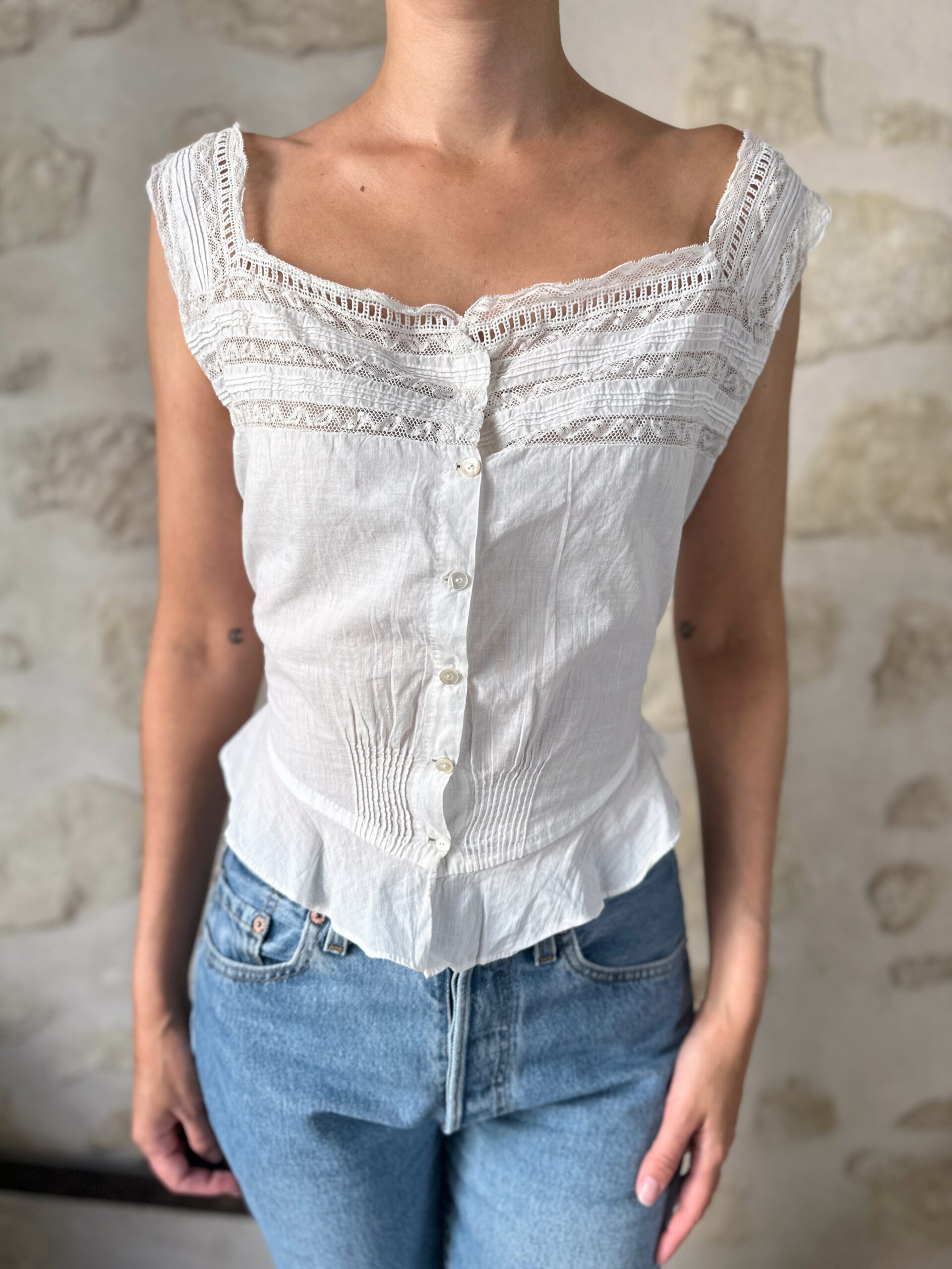 Ethereal corset cover with pintuck details and valenciennes lace.