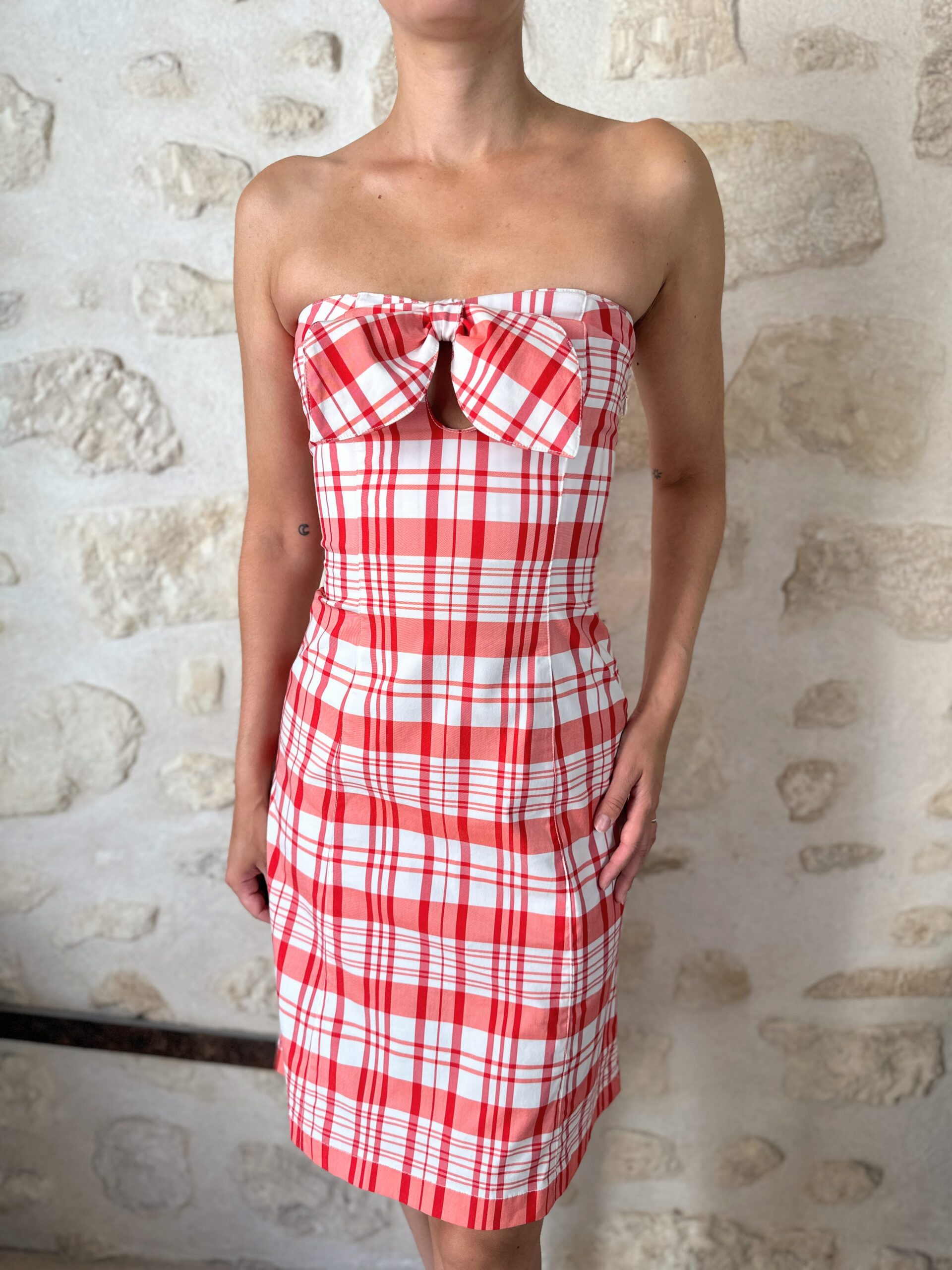Vintage Moschino Plaid Bustier Dress