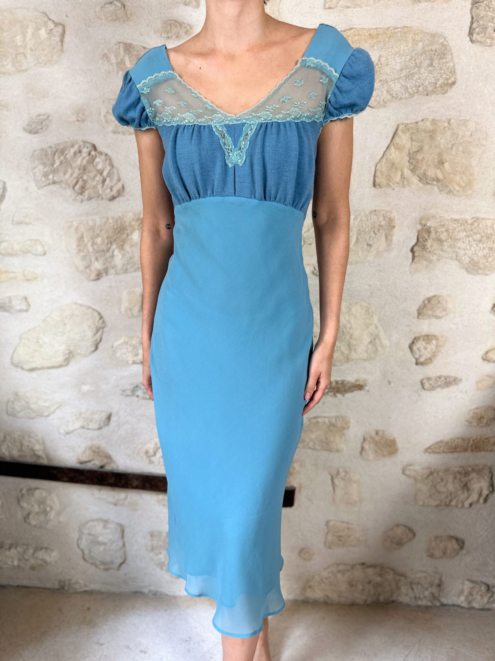 Whimsical princess dress in silk and wool from niche Italian designer Patty Shelabarger – who had only a handful of runway collections up until 2003. Unique and rare collectors item.