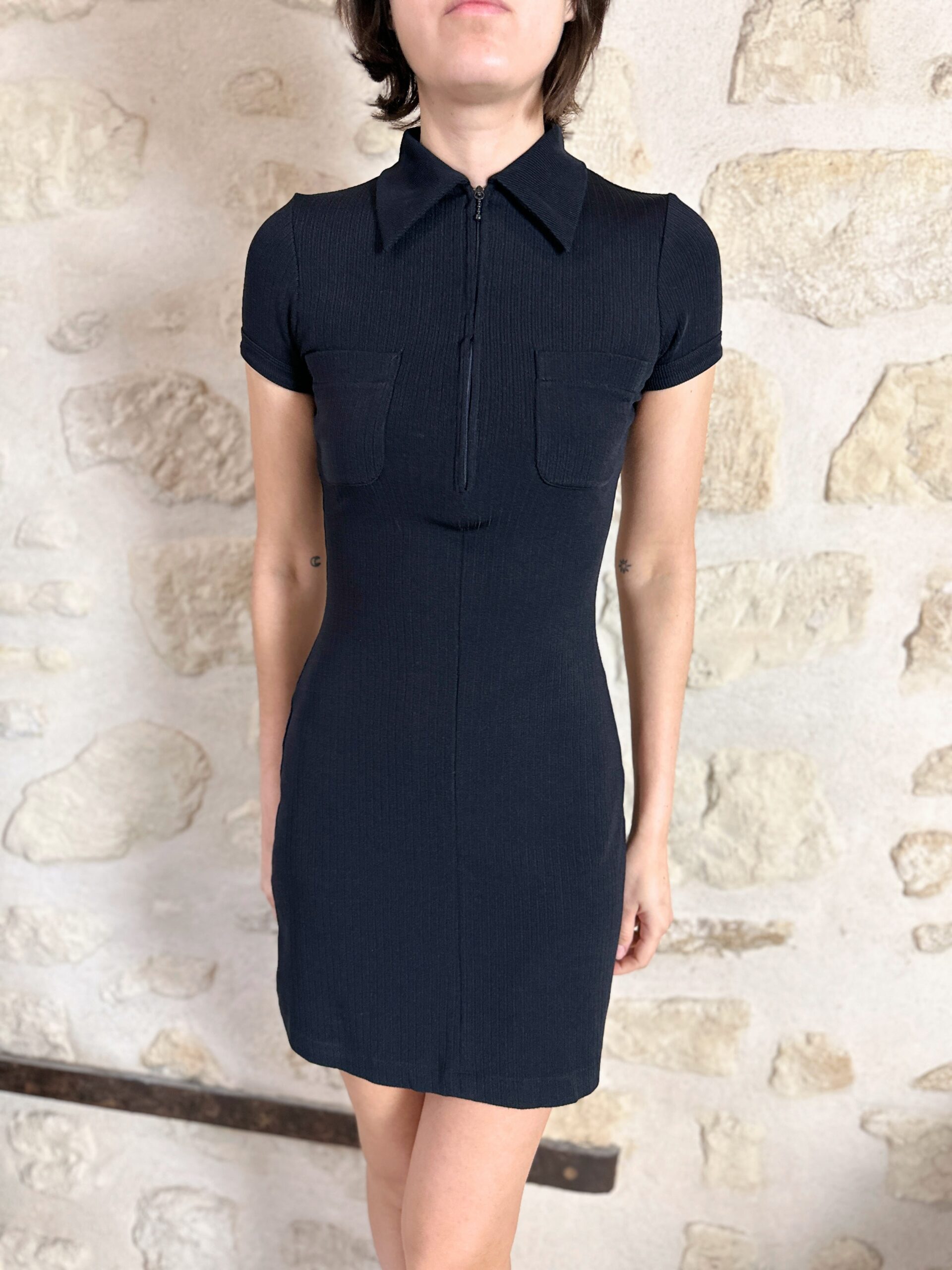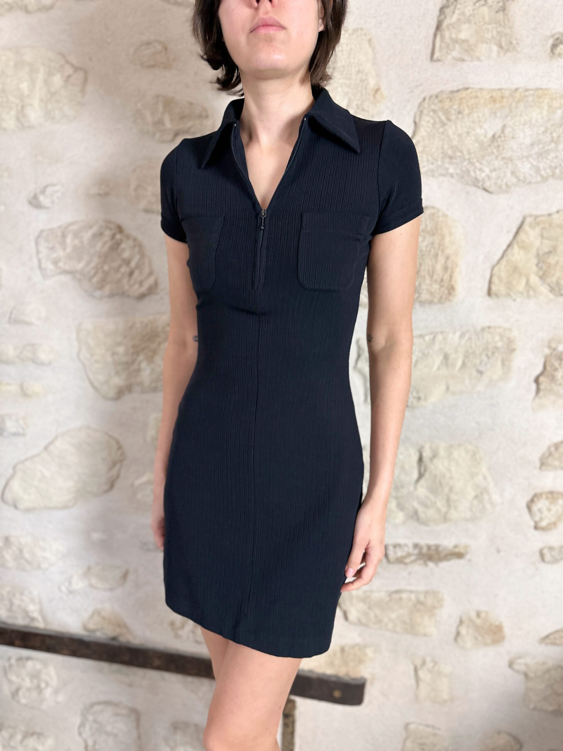 Vintage Plein Sud mini black dress with zip closure.