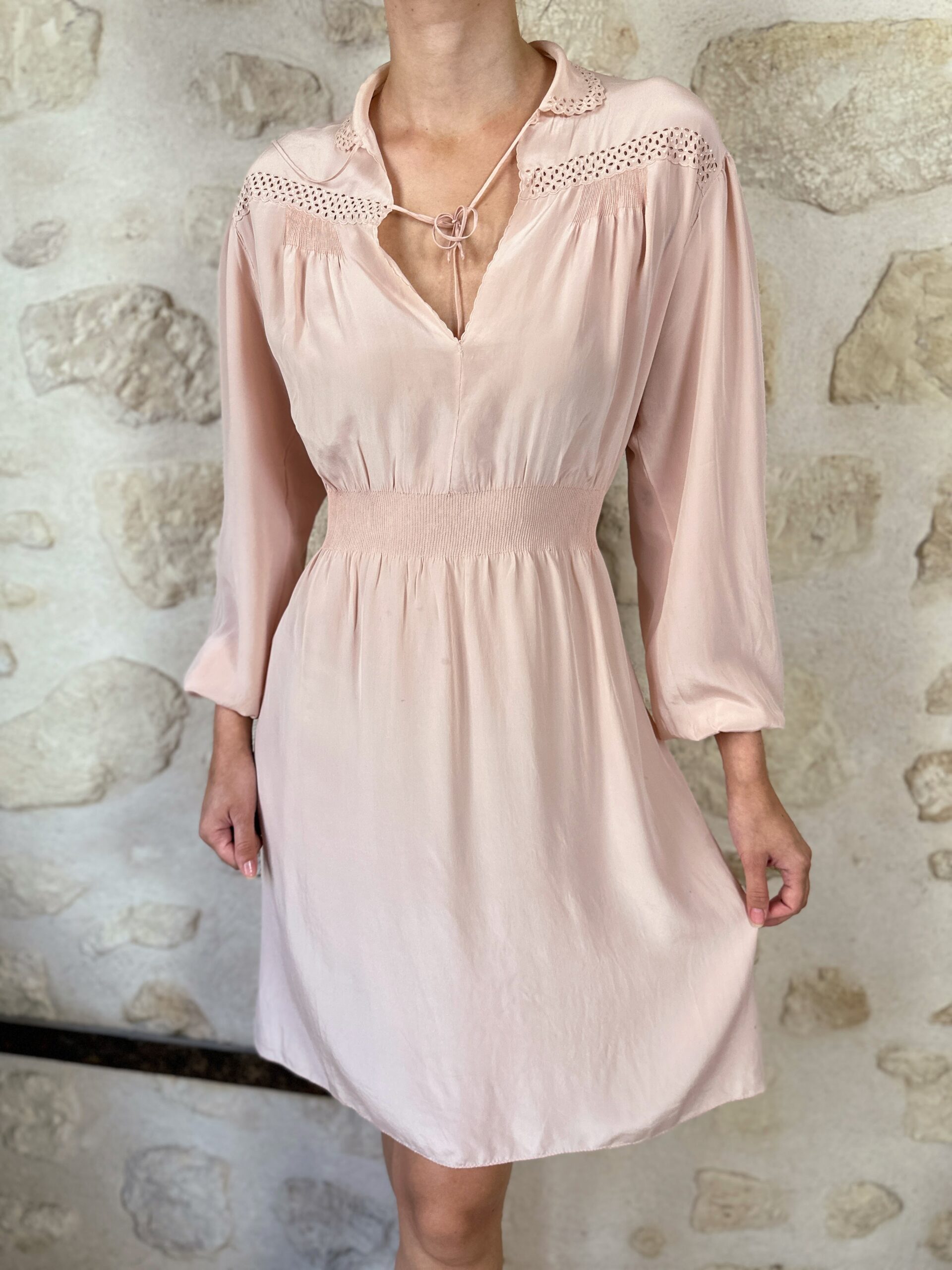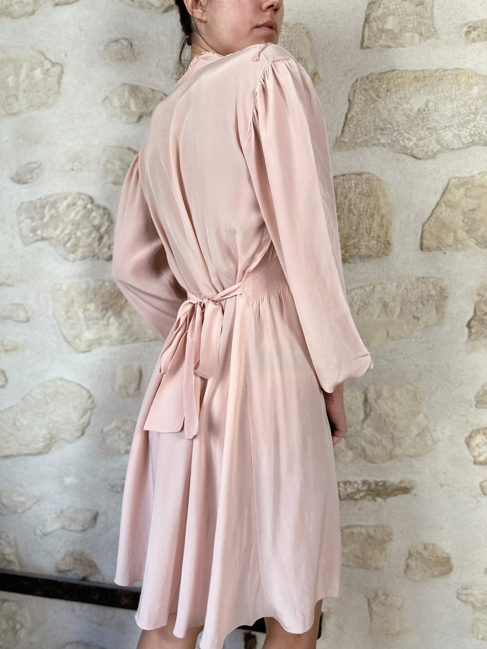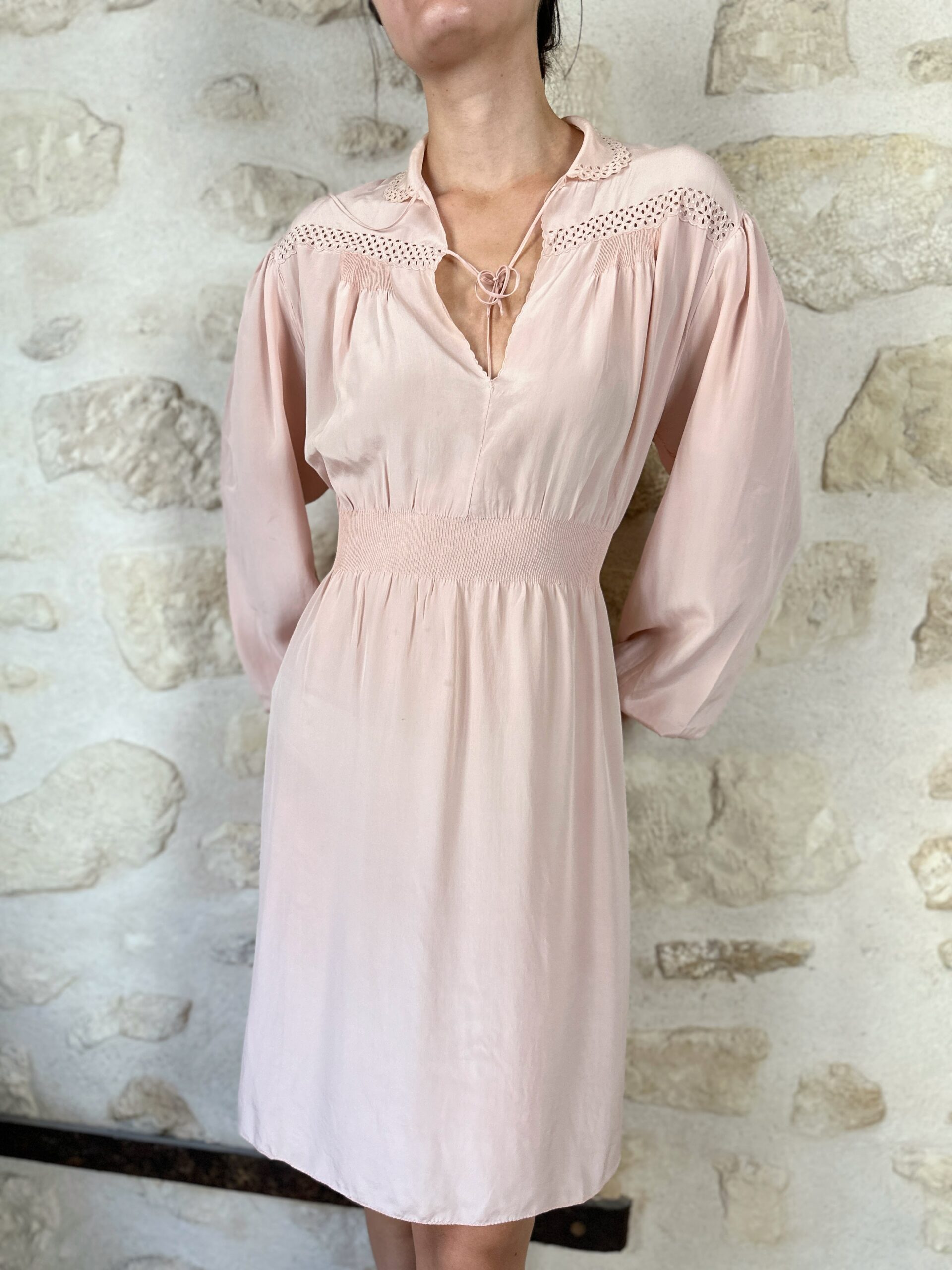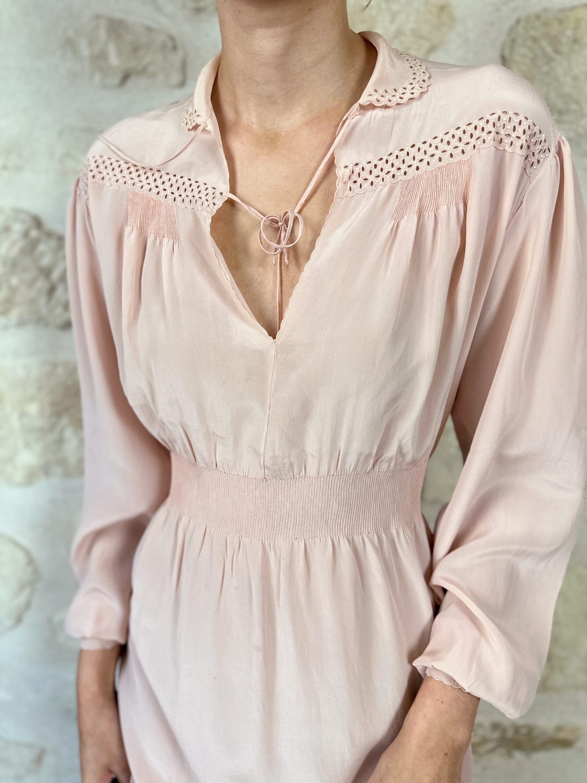 Vintage dreamy silk dress with delicate eyelet lace details and pin tuck pleats.